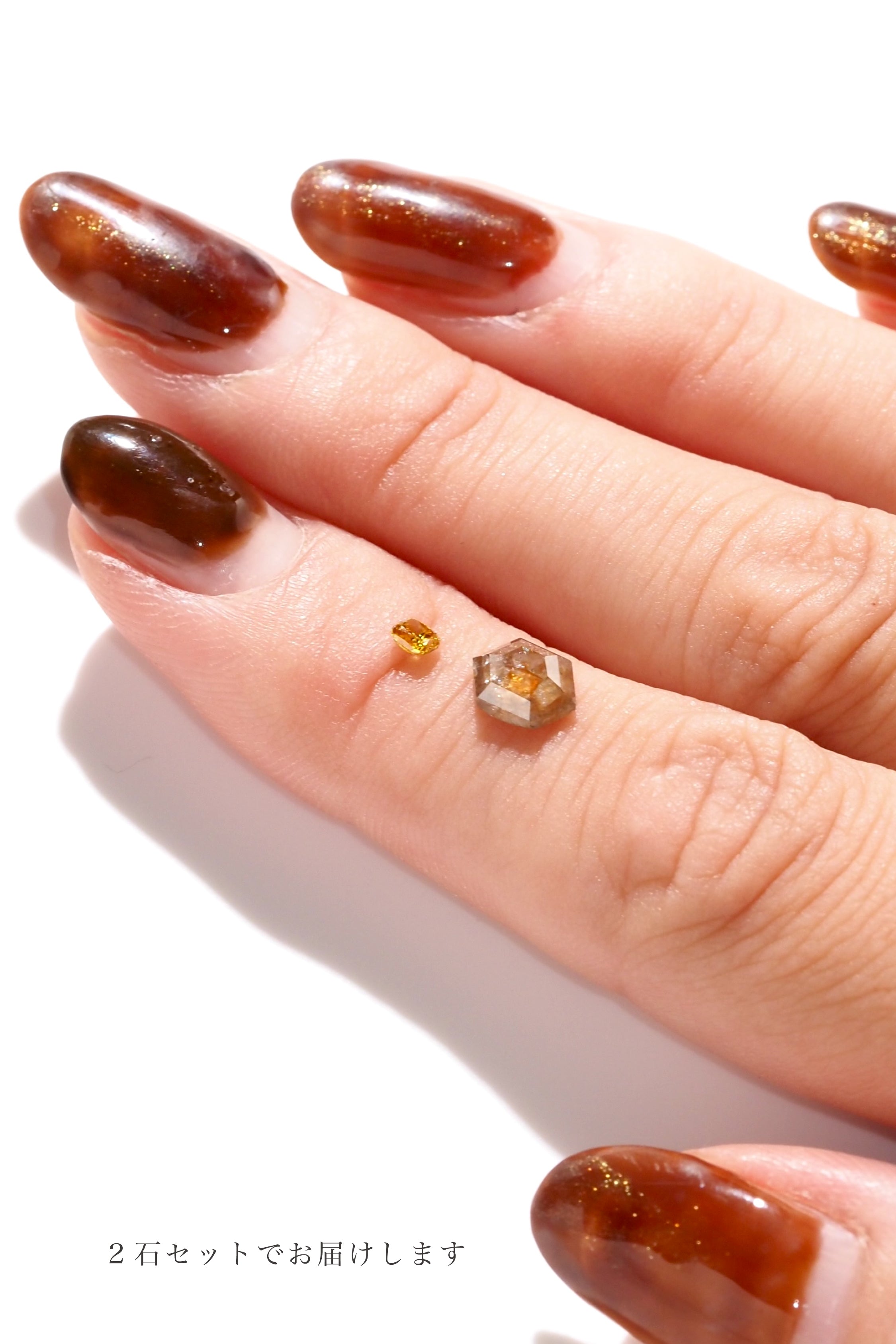 思わず全部集めたくなるナチュラルカラーダイヤモンド。 今回はこの2個体をペアセットでお届けします。 専門の研磨師による美しいカットは、その宝石が持つ作品性を最大限に引き出しています。