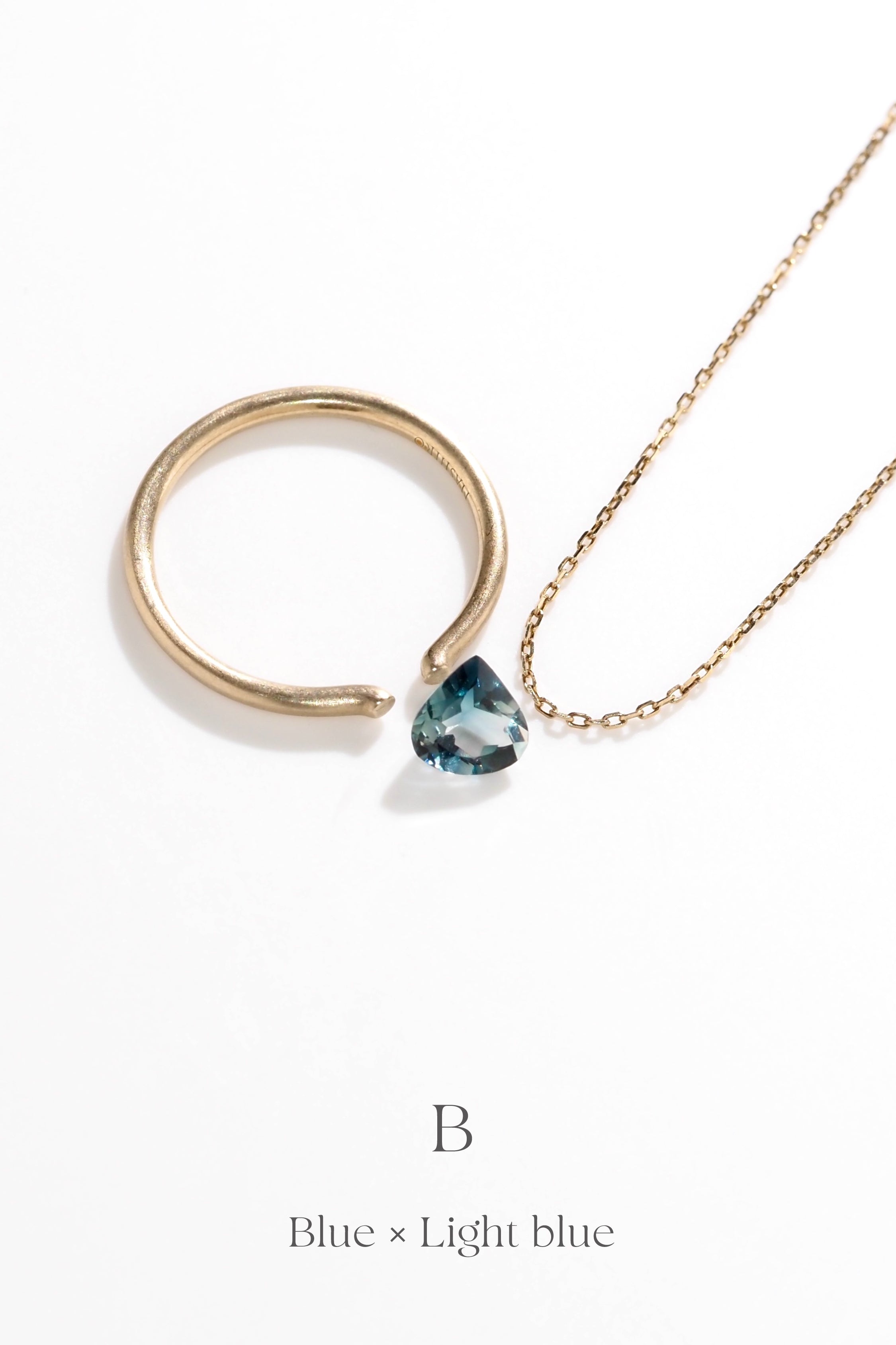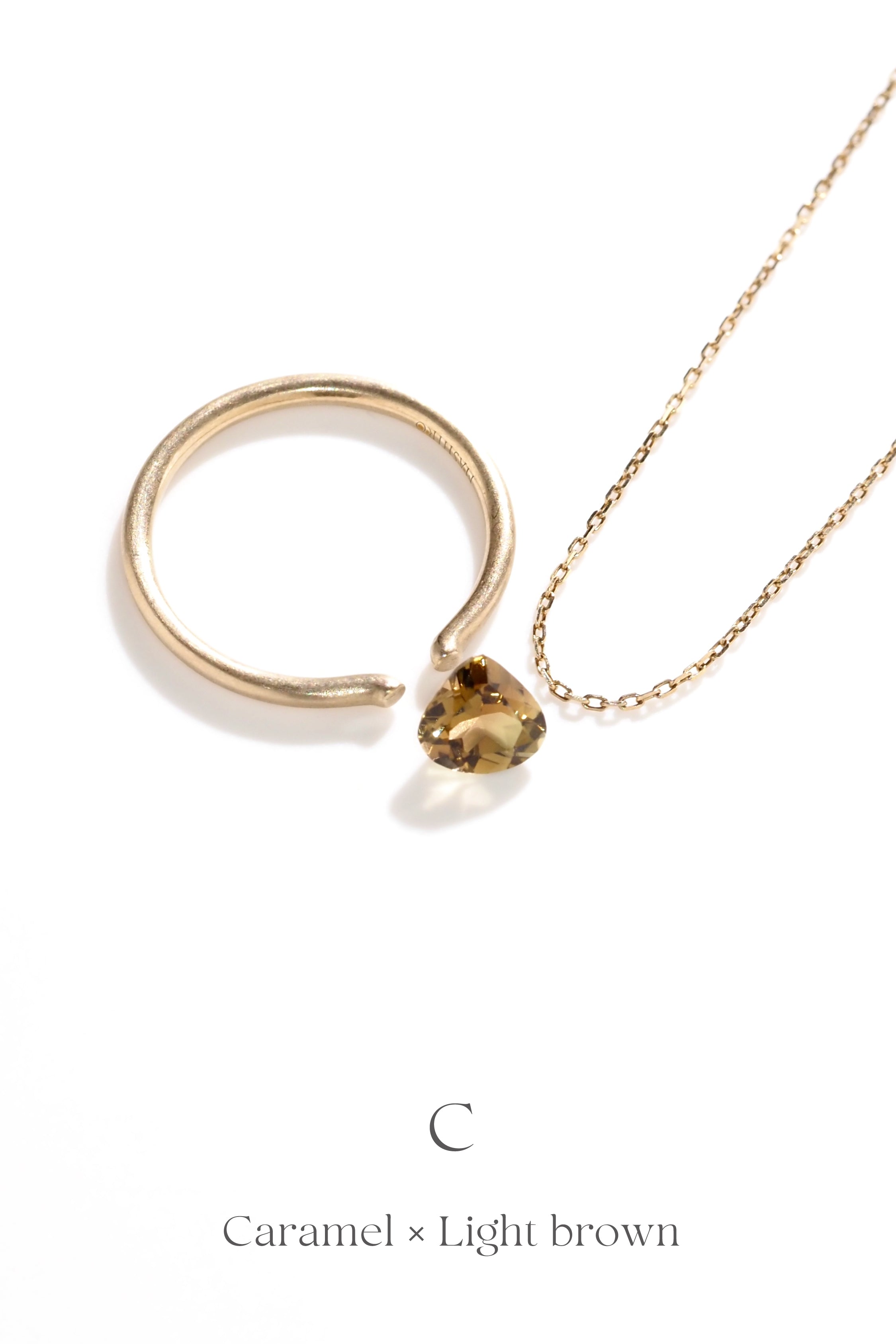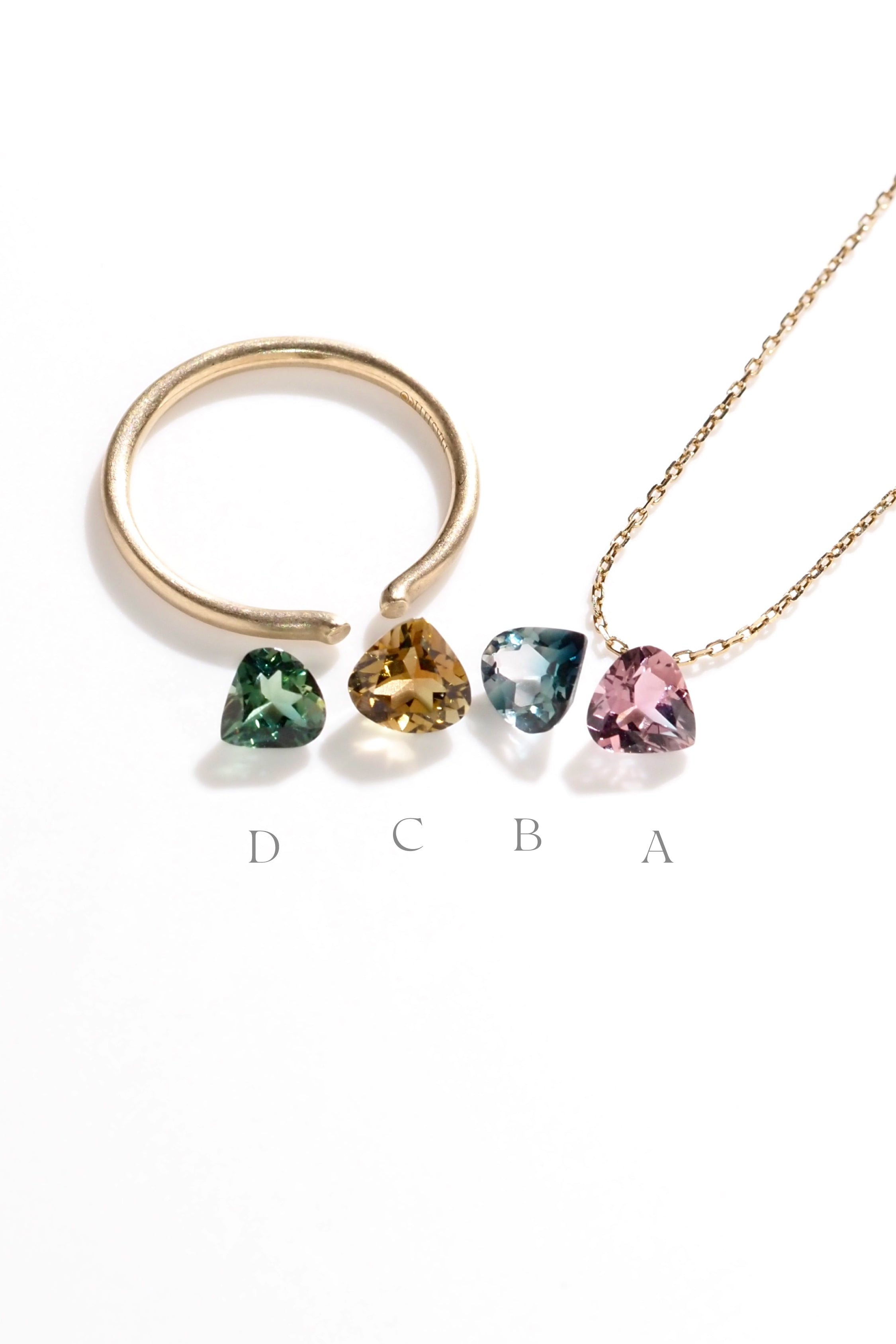 • シンプルなゴールドリング枠に留めて、透明感を活かしたソリティアジュエリーに。
