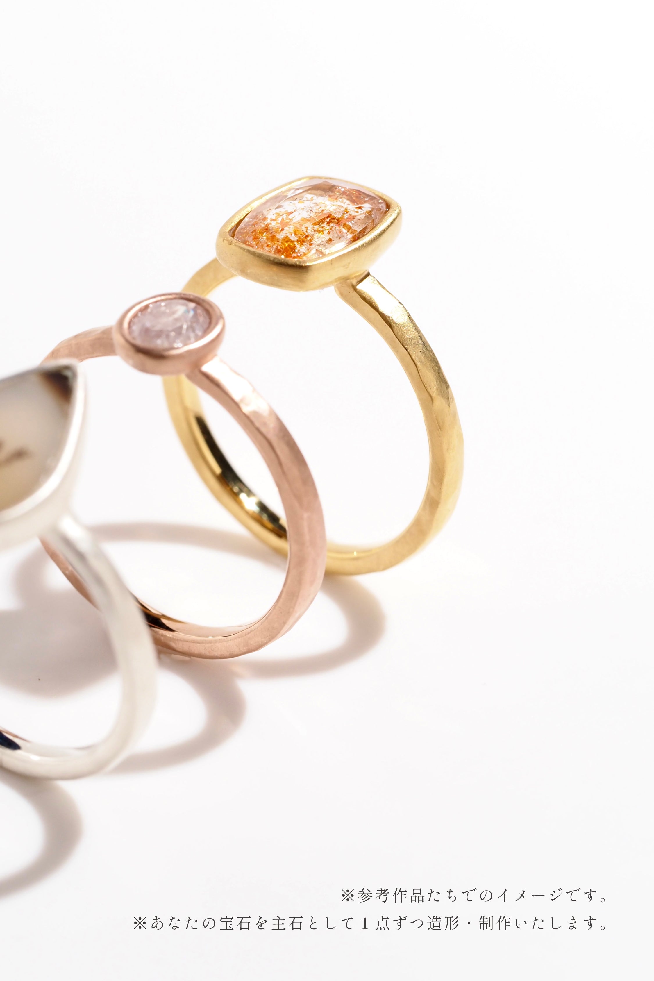 ハンドクラフトで仕上げる。ラグジュアリーで落ち着いた槌目加工リング。あなたの宝石からのお仕立てやジュエリーリメイクで、世界に1つの槌目リングを作ります。