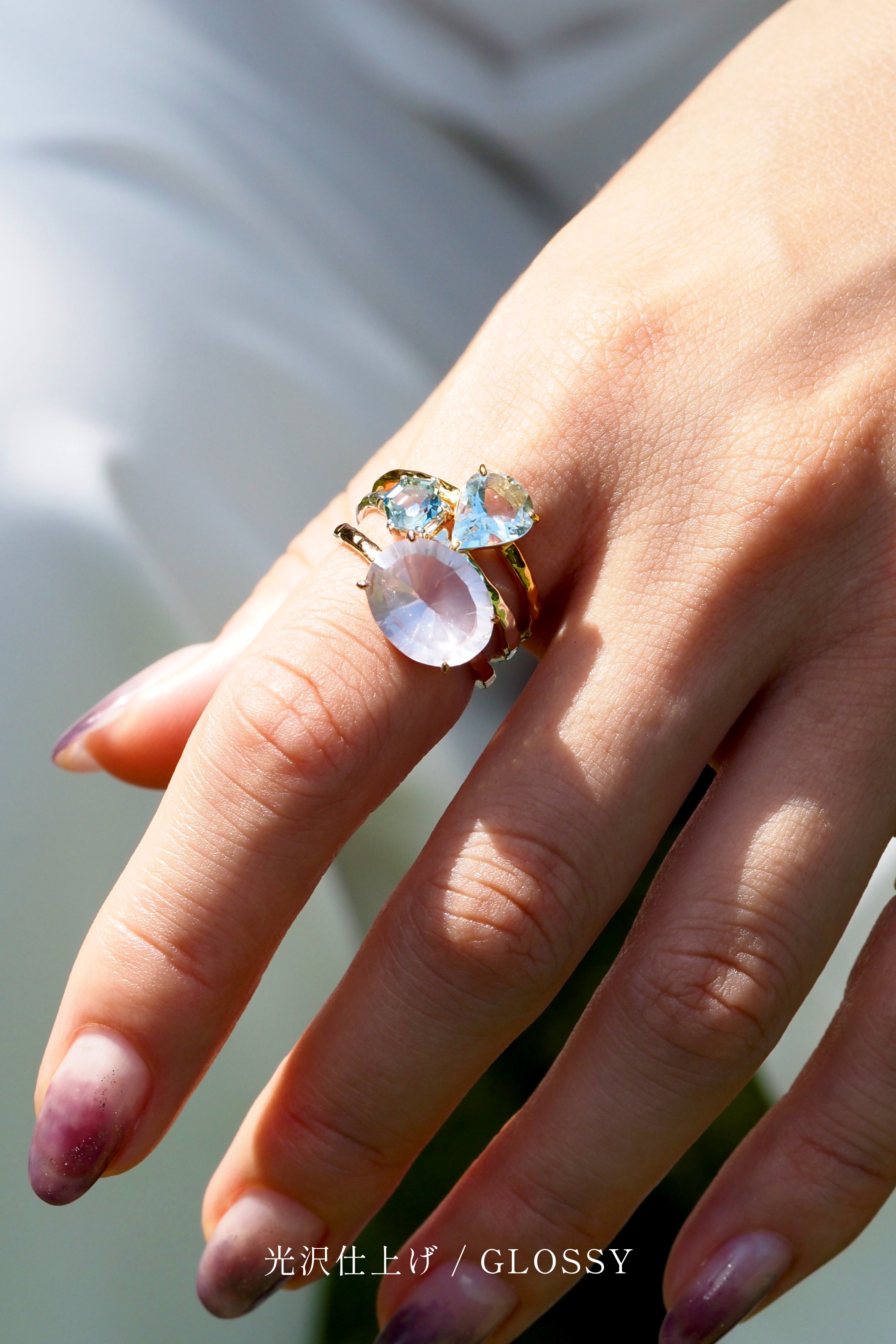 高さをおさえたポットリング構造により、あらゆるサイズや形の宝石たちを心まで馴染むような着け心地でお楽しみいただけます。