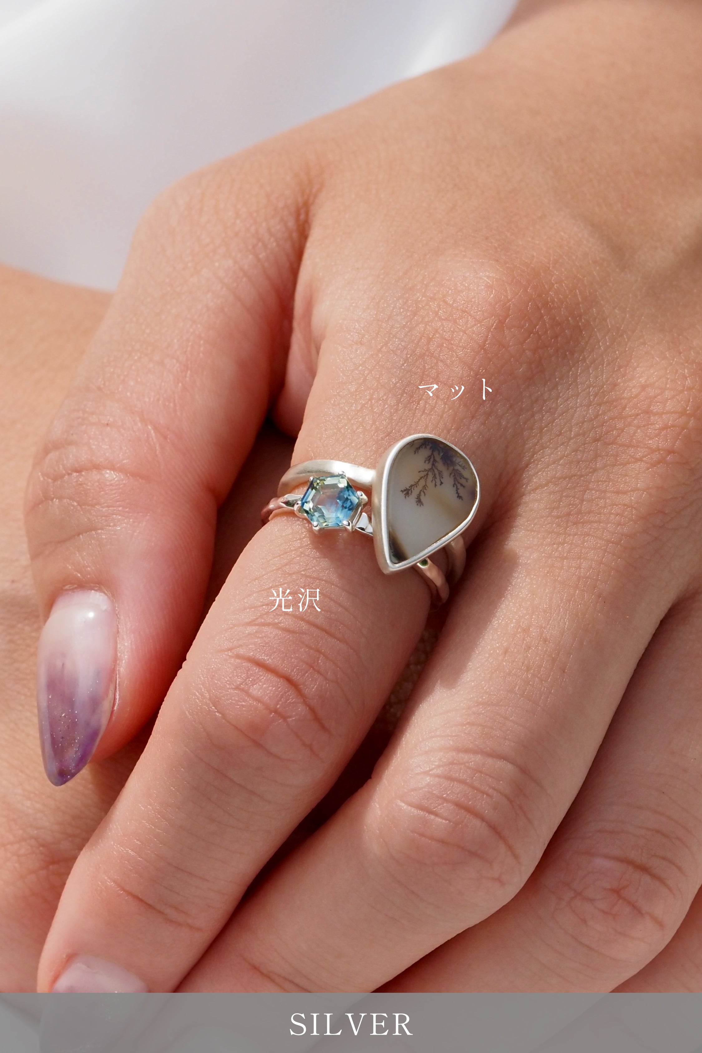 シルバー925(SV925)へ、さらにクリアコーティングを施しており、貴金属でK18やプラチナよりも最も美しく輝くシルバーの色味を損なわず、変色も起こりづらくしています。