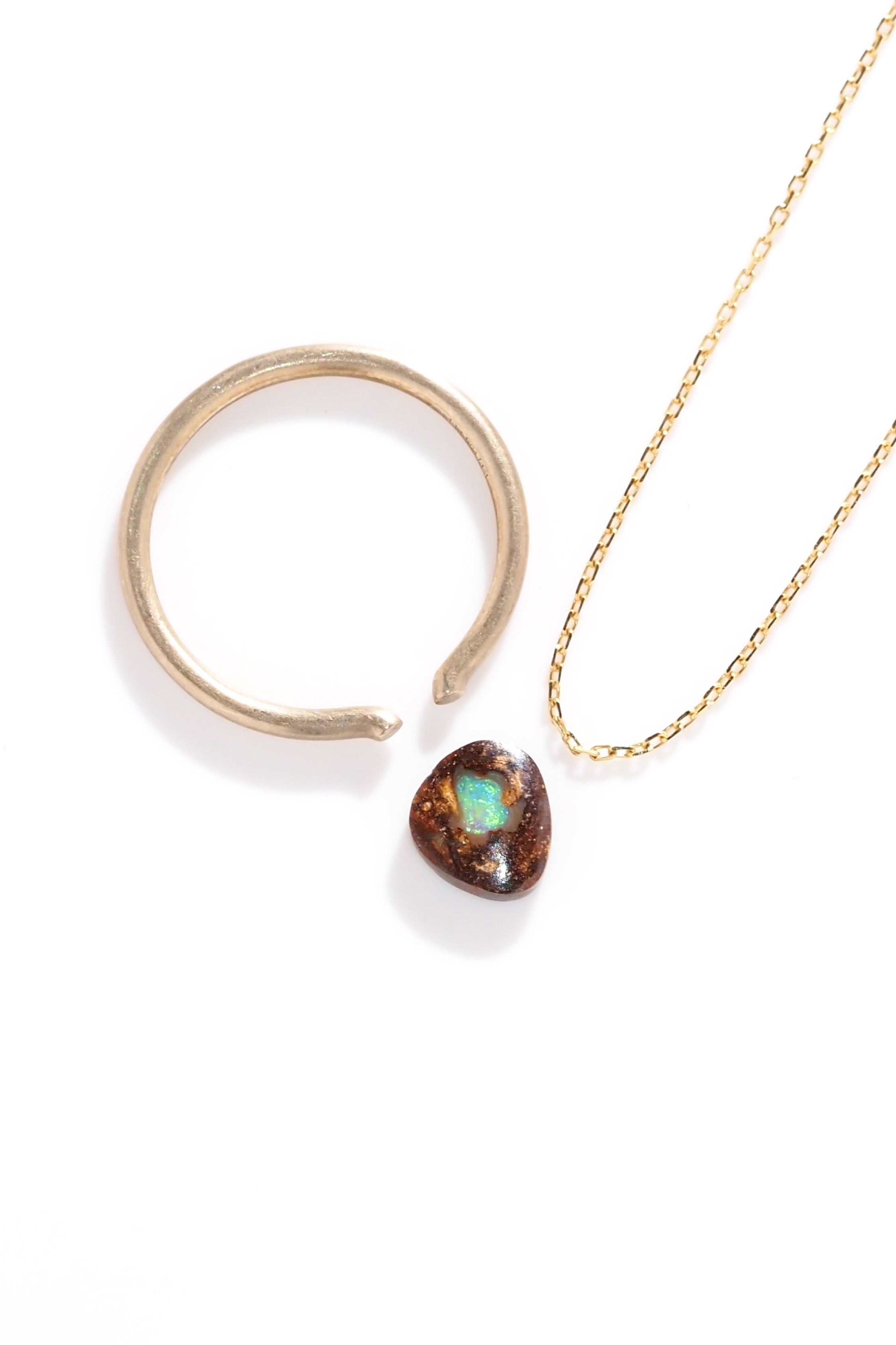 シンプルな覆輪留めで仕立てれば、石そのものの風景をそのまま楽しめるミニマルなジュエリーに。