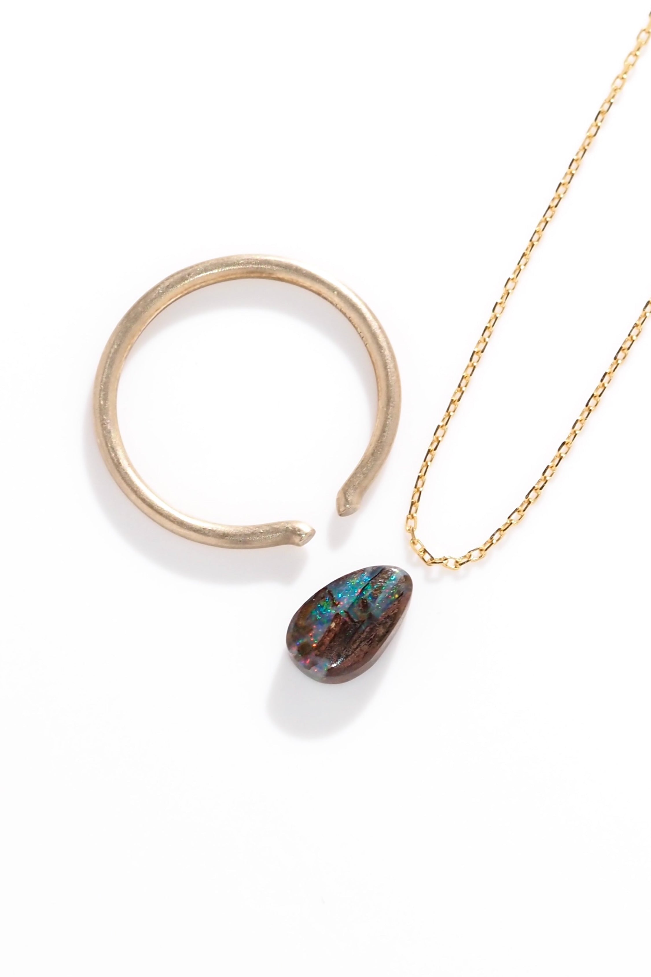 シンプルな覆輪留めで仕立てれば、石そのものの風景をそのまま楽しめるミニマルなジュエリーに。