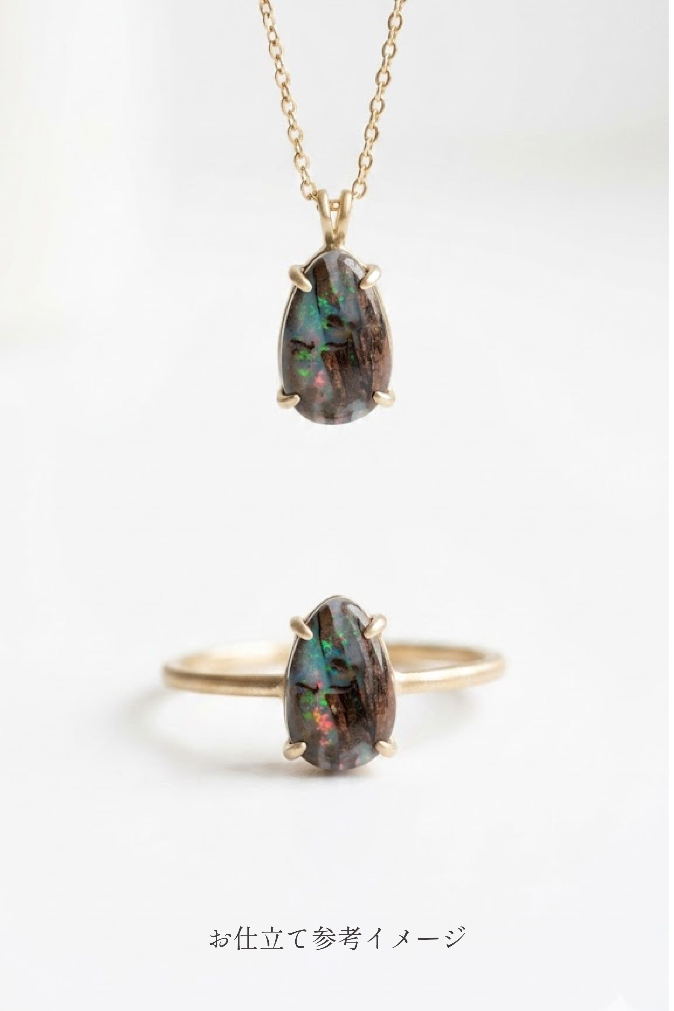 このウッドオパールは、その有機的で個性的な表情を活かしたデザインに仕立てることで、圧倒的な存在感を放ちます。