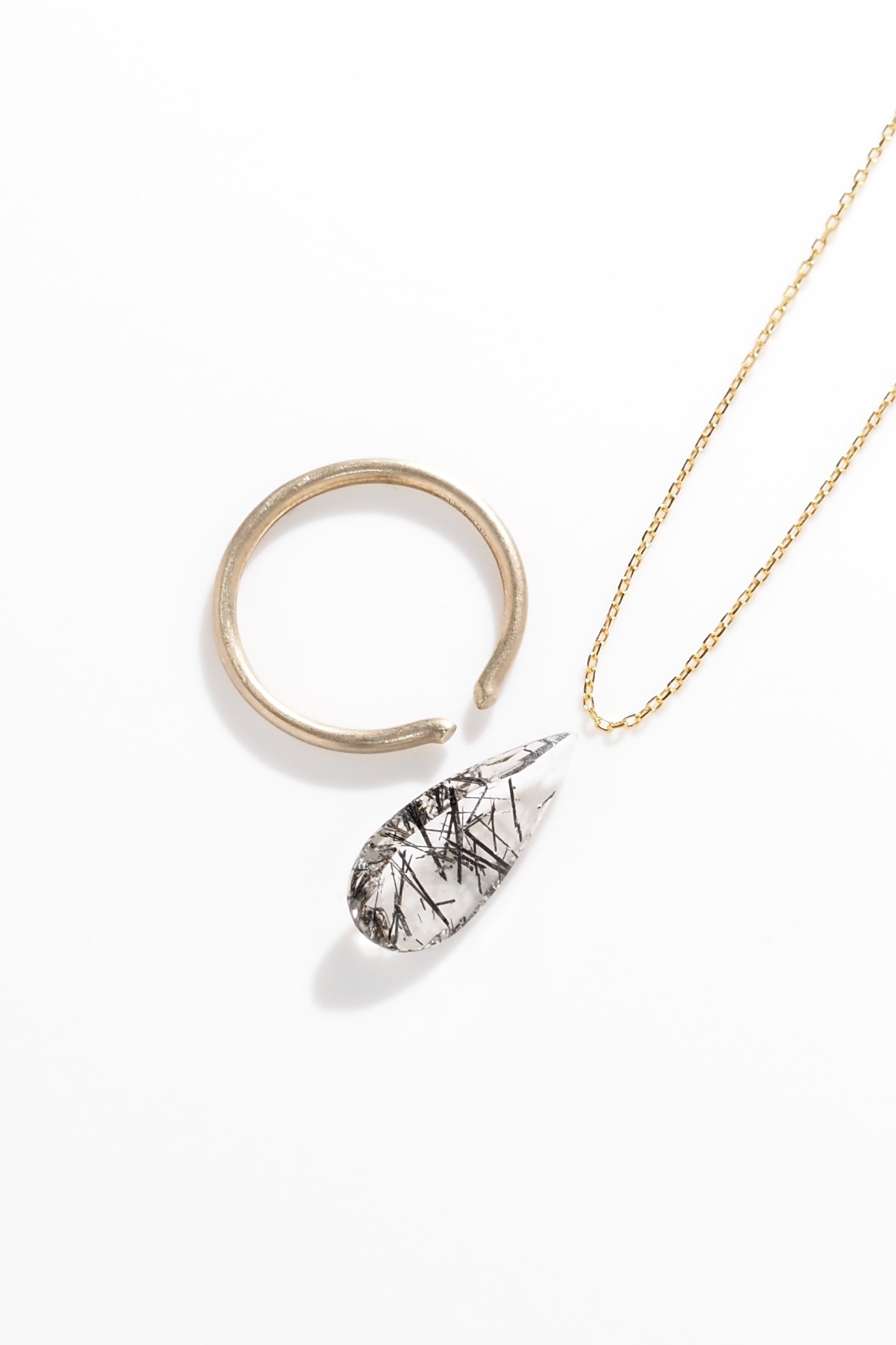 縦に長く伸びるフォルムが、内包されたルチルの流れや方向性を強調し、まるで一本の軌跡のような美しさを描き出します。