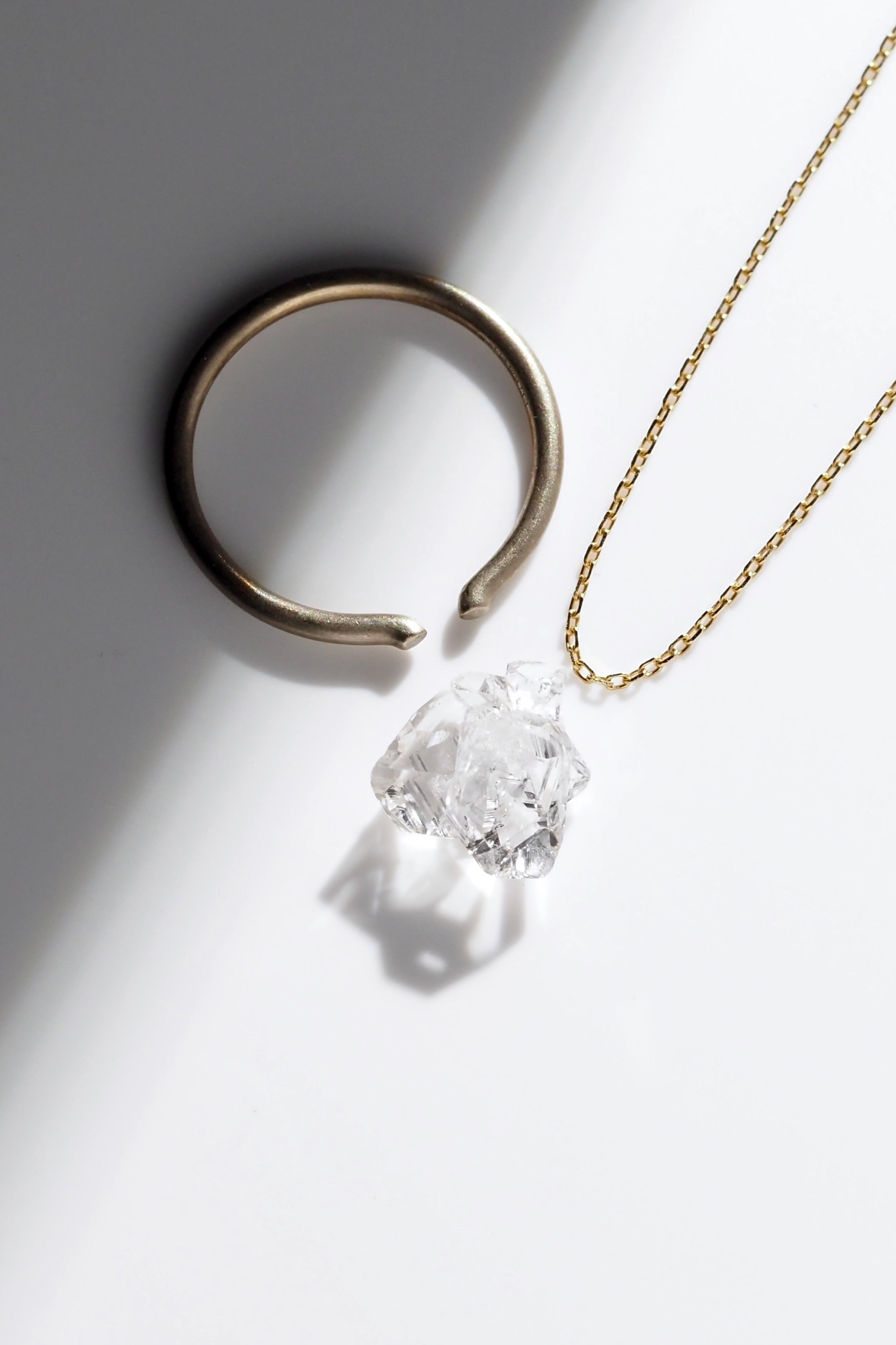 ネックレスとして空間に浮かせるように仕立てることで、光を全方向から取り込み、結晶の魅力を最大限に引き出します。