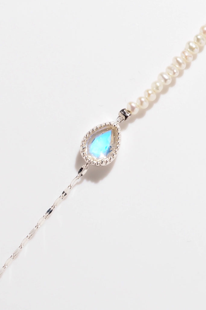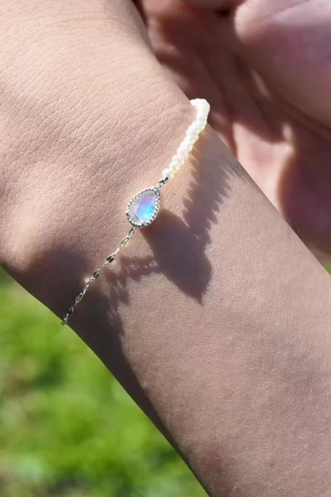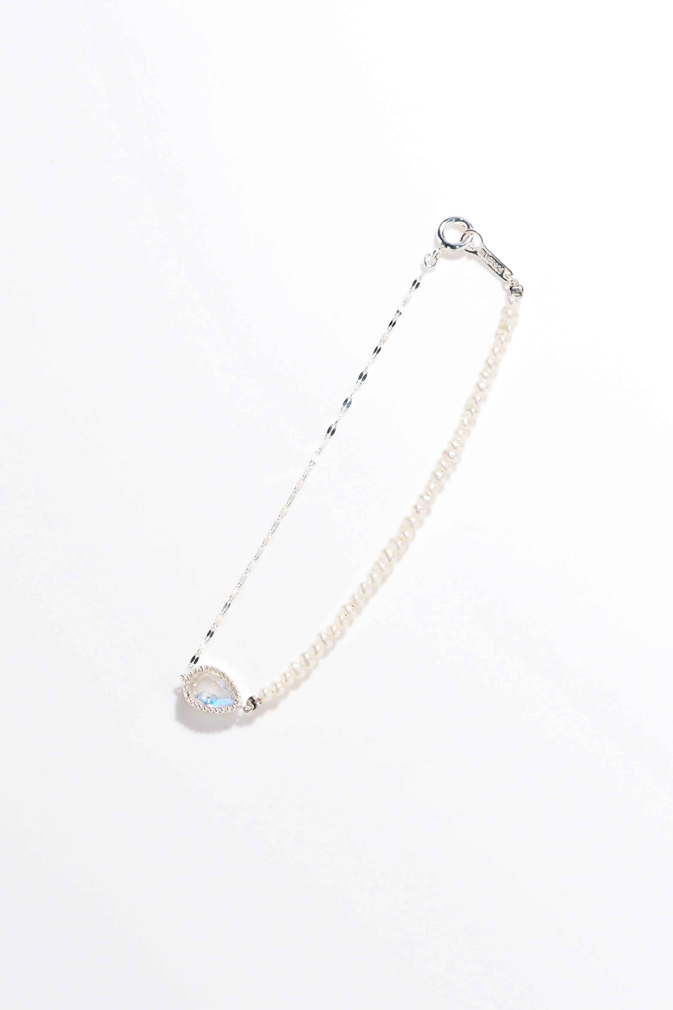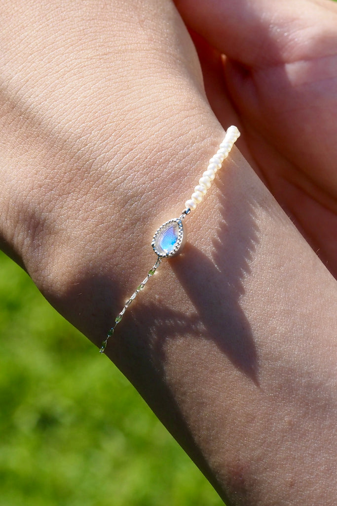 静かに宿る、月の魔法。ロイヤルブルームーンストーン × パール&ペタルチェーン ブレスレット。