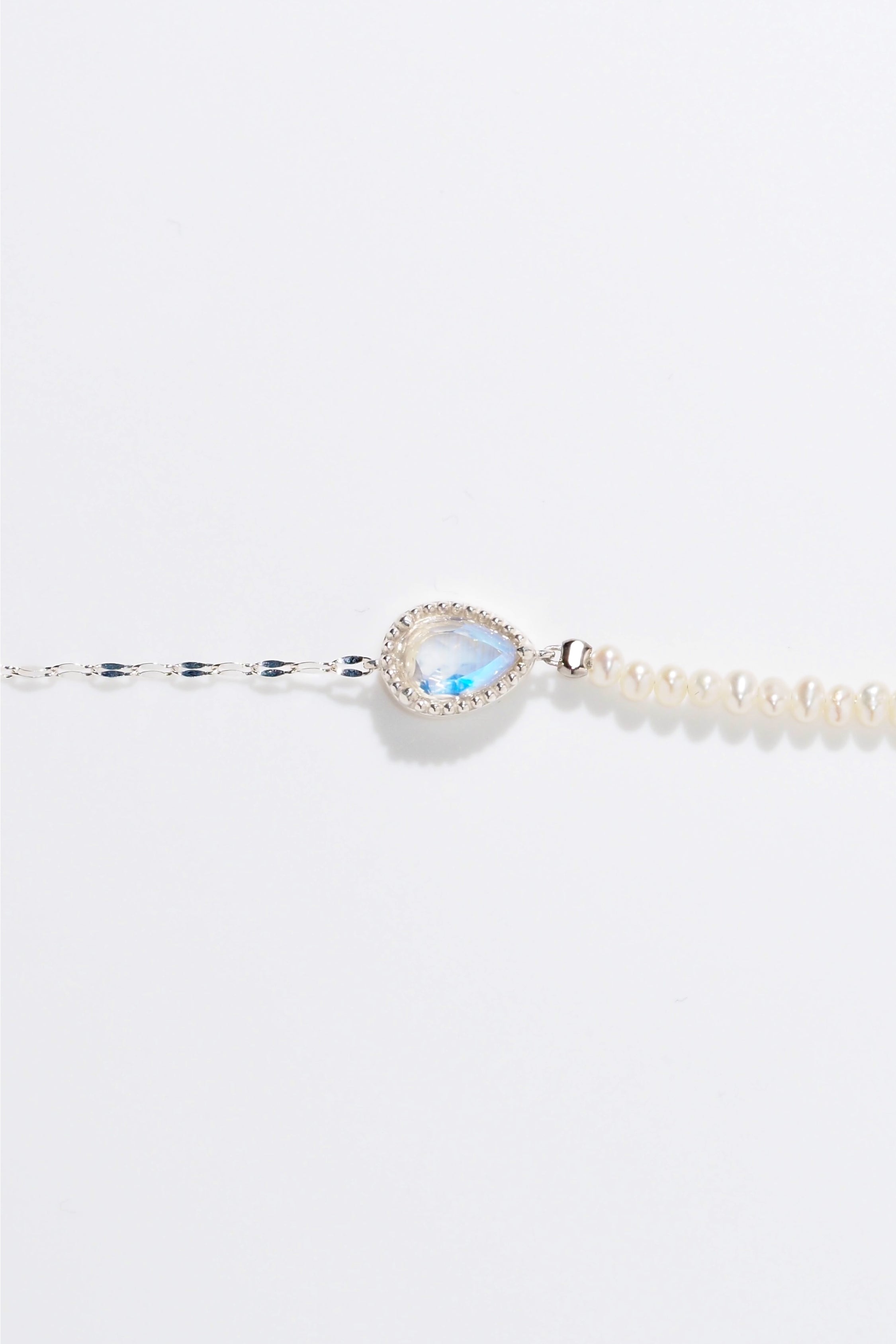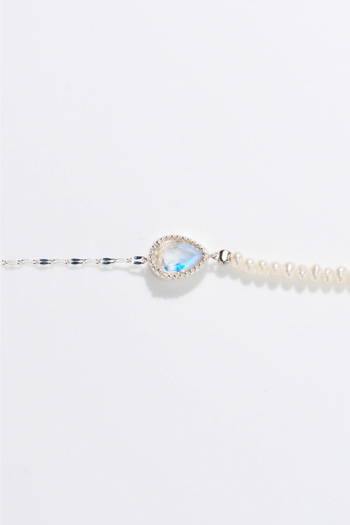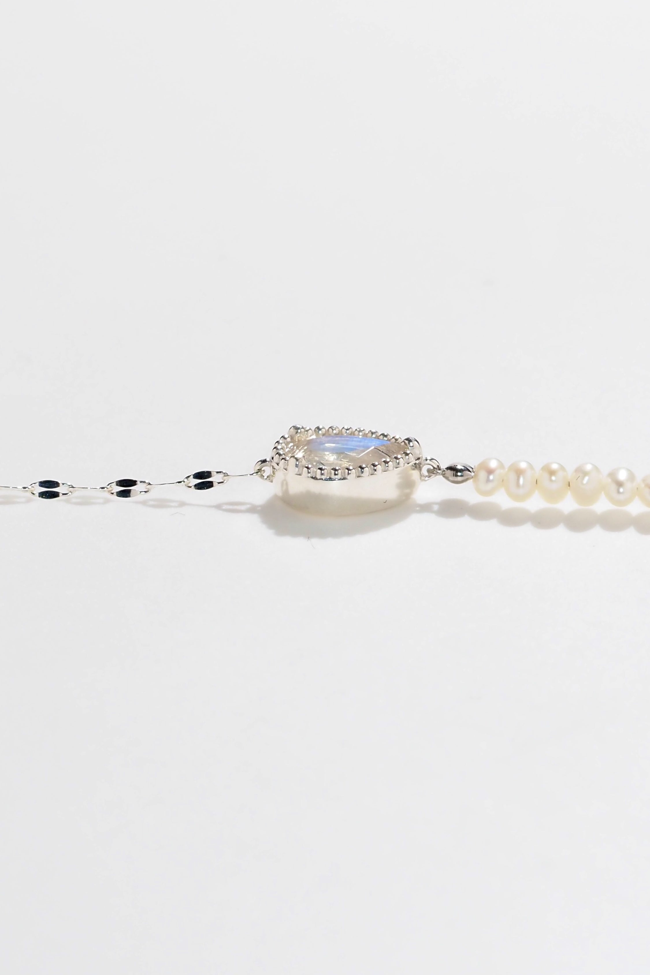 静かに宿る、月の魔法。ロイヤルブルームーンストーン × パール&ペタルチェーン ブレスレット。