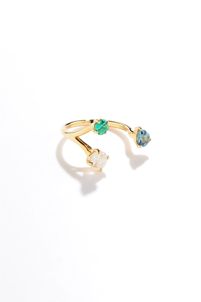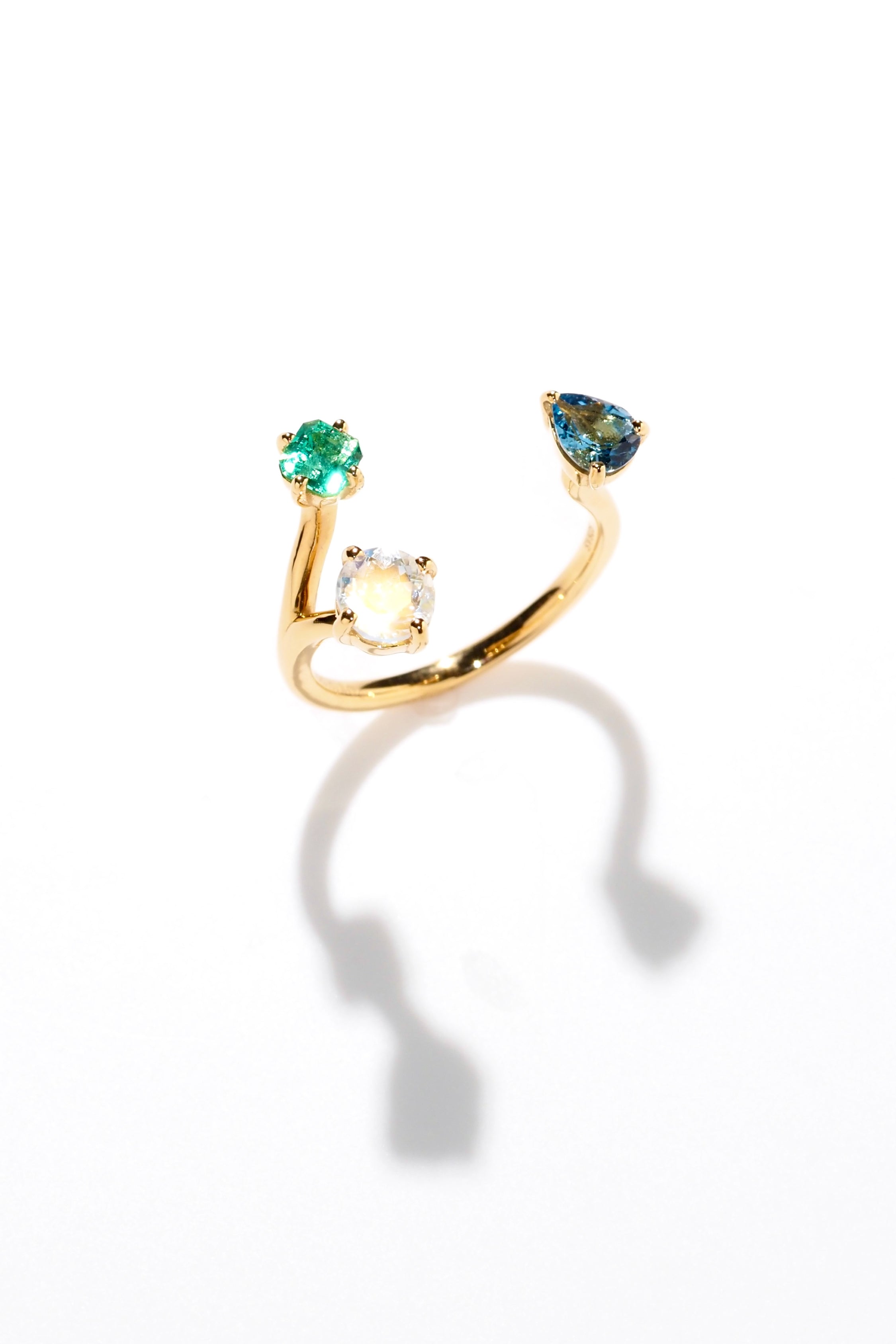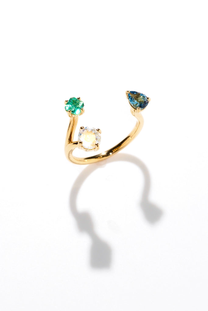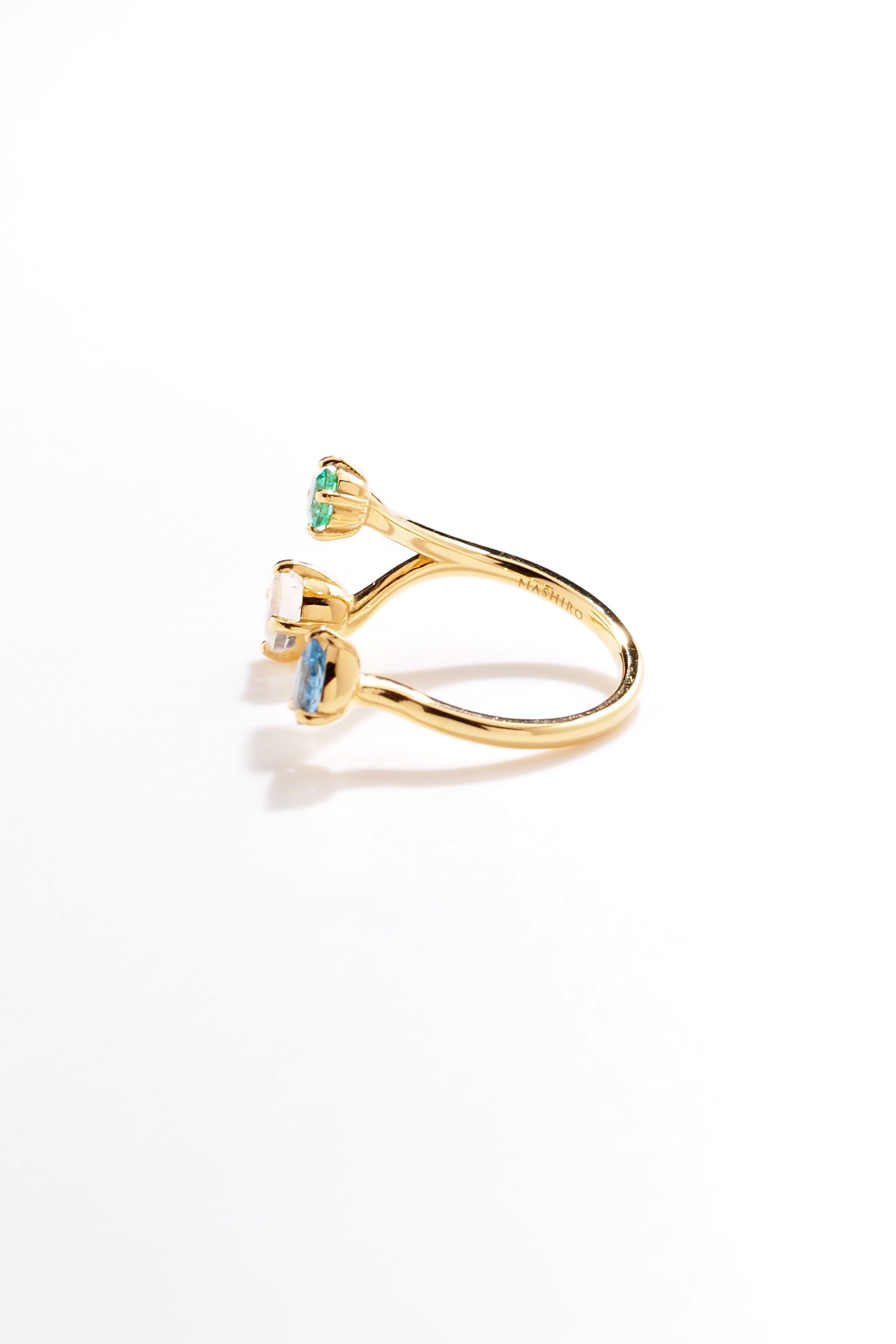 オープンブーケリング|エメラルド&アクアマリン&ムーンストーン