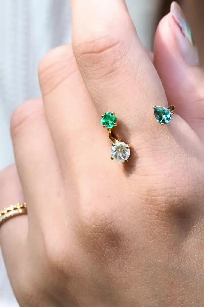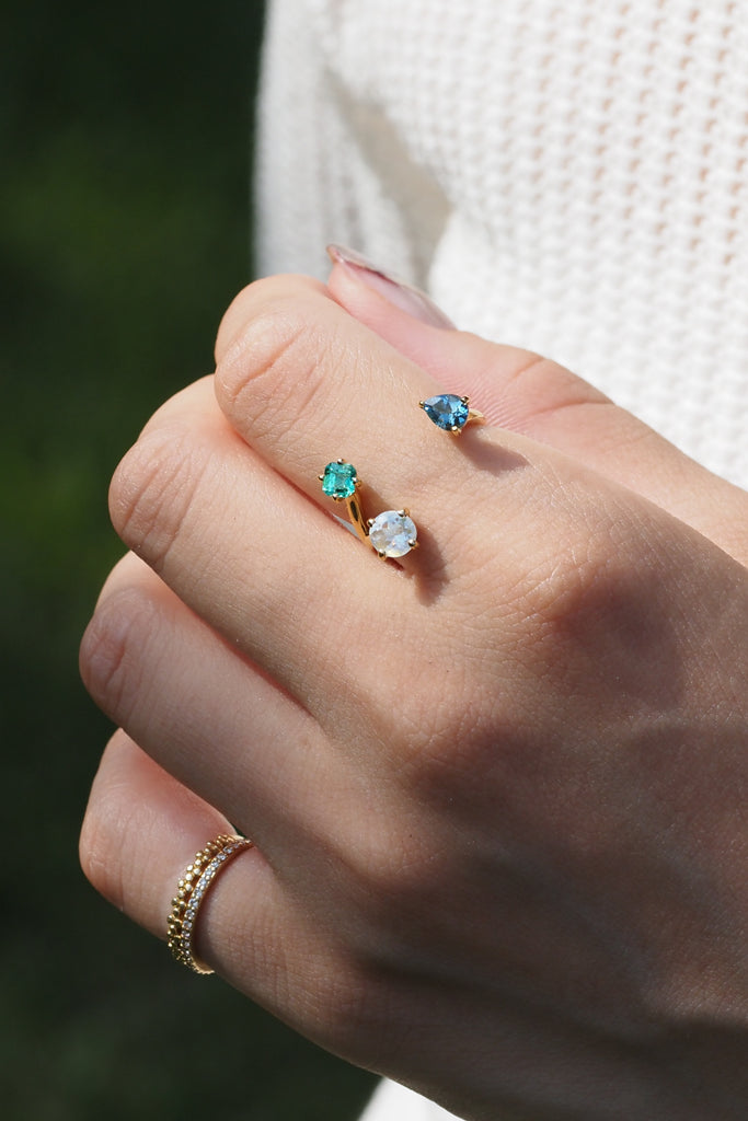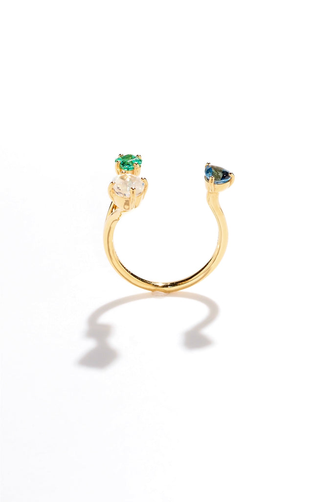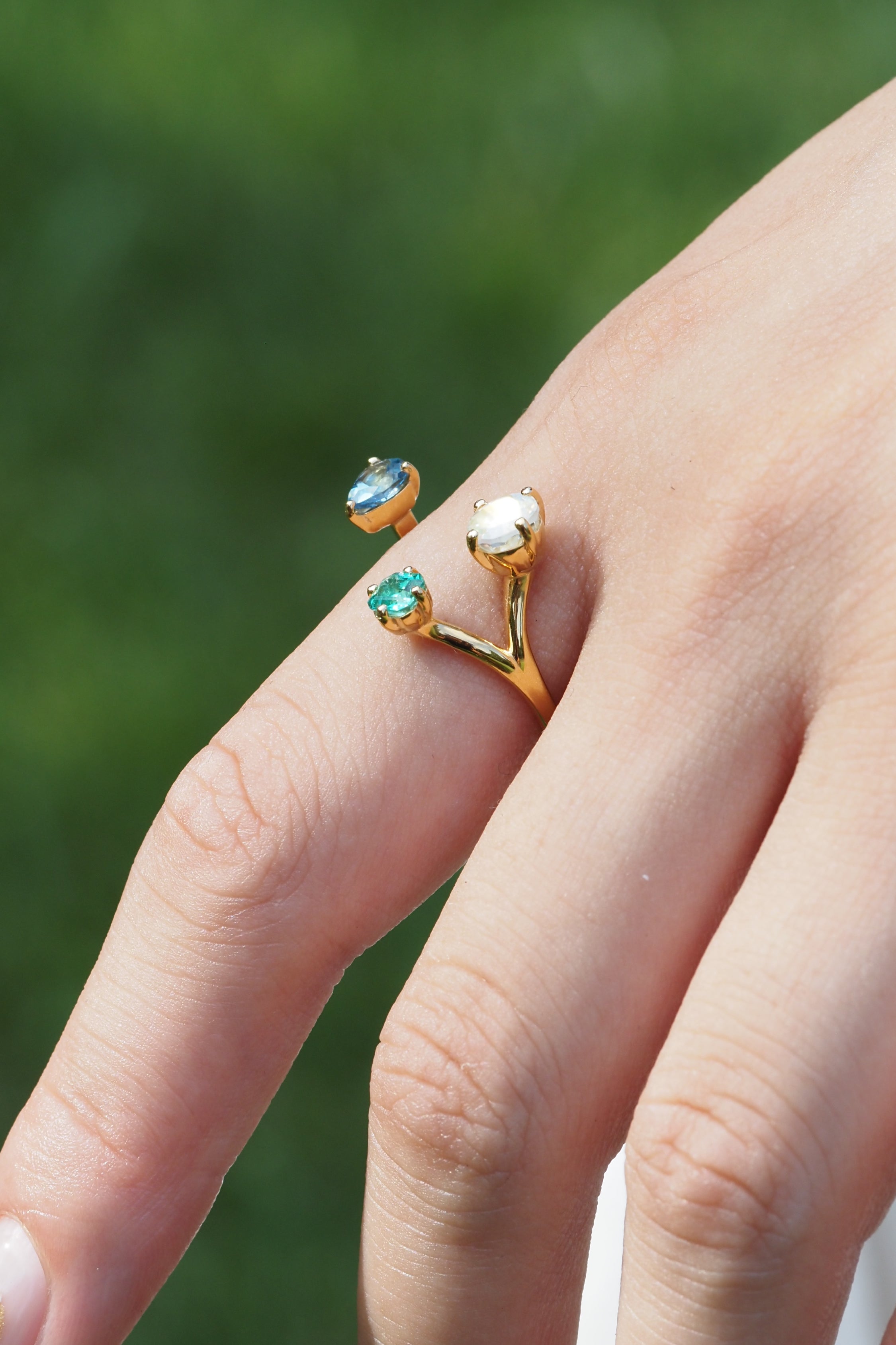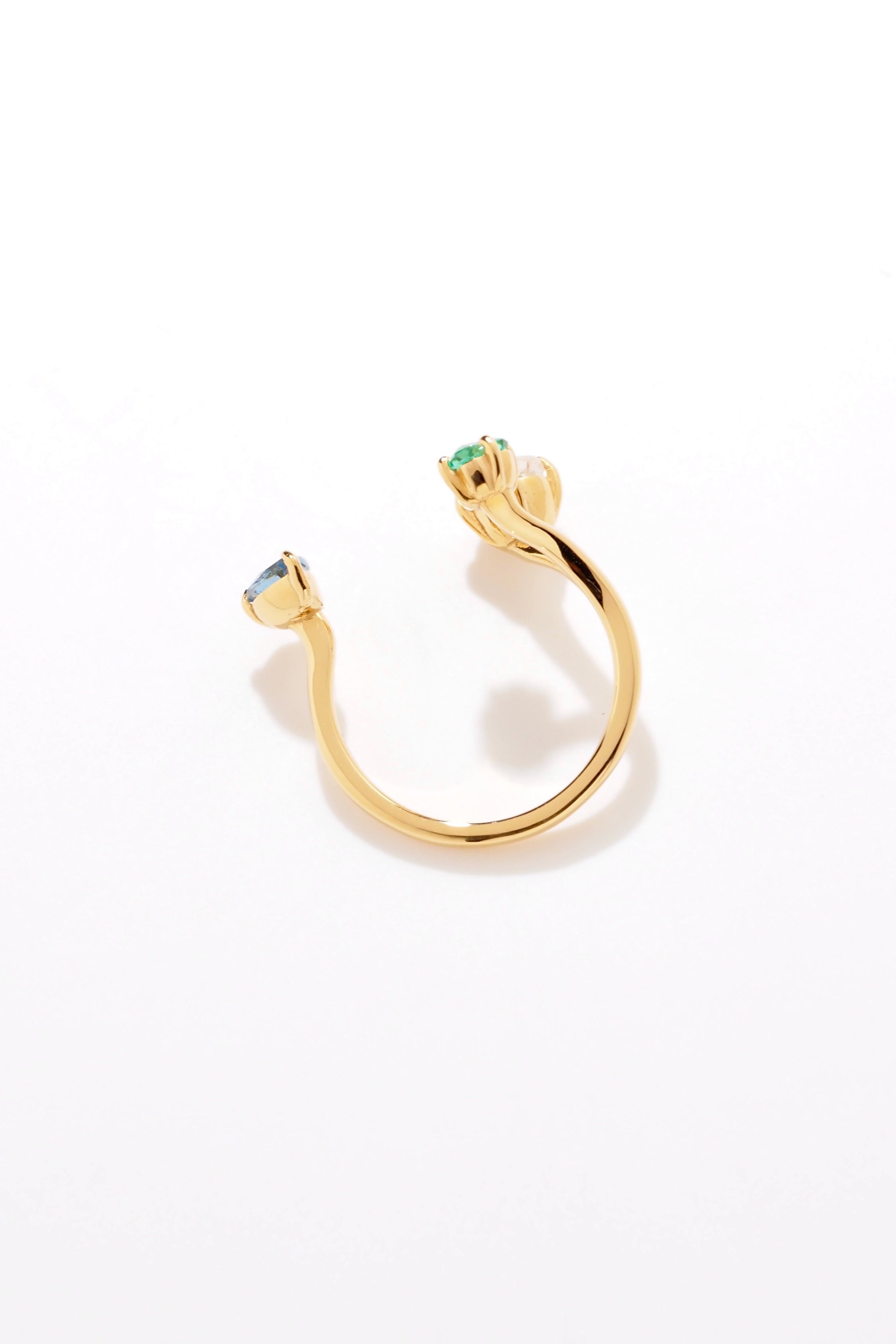 オープンブーケリング|エメラルド&アクアマリン&ムーンストーン