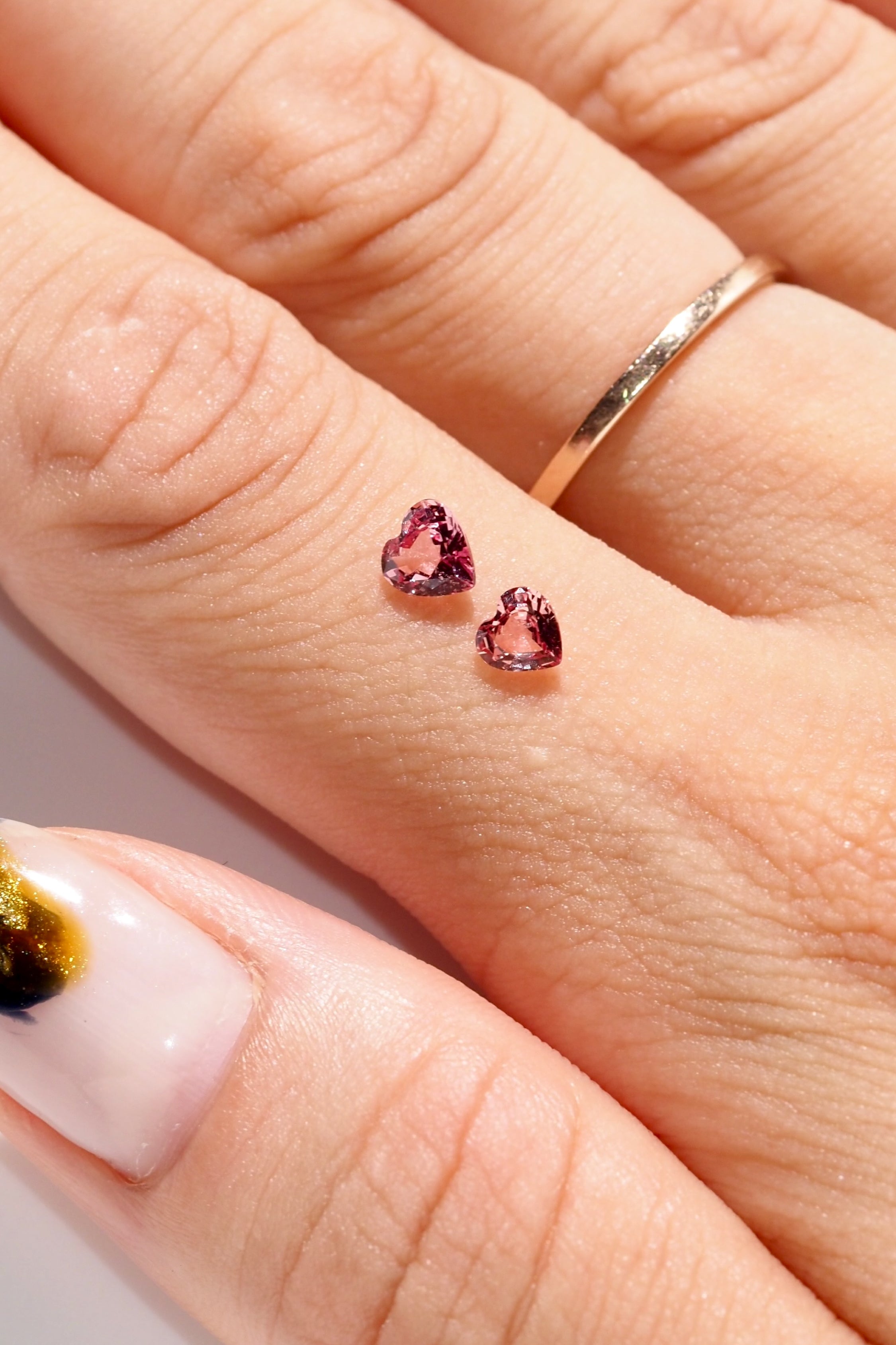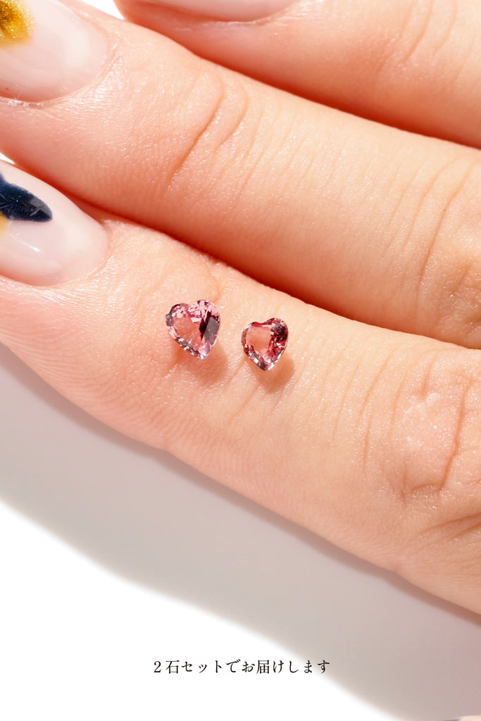 希少なパパラチアサファイアを、蓮の花色を引き立てるハートシェイプでお楽しみいただける2石。 サファイア専門の研磨師がカットした、愛らしくも大人な美しさと芳醇さをもつ2石は、様々な活用性も生まれます。