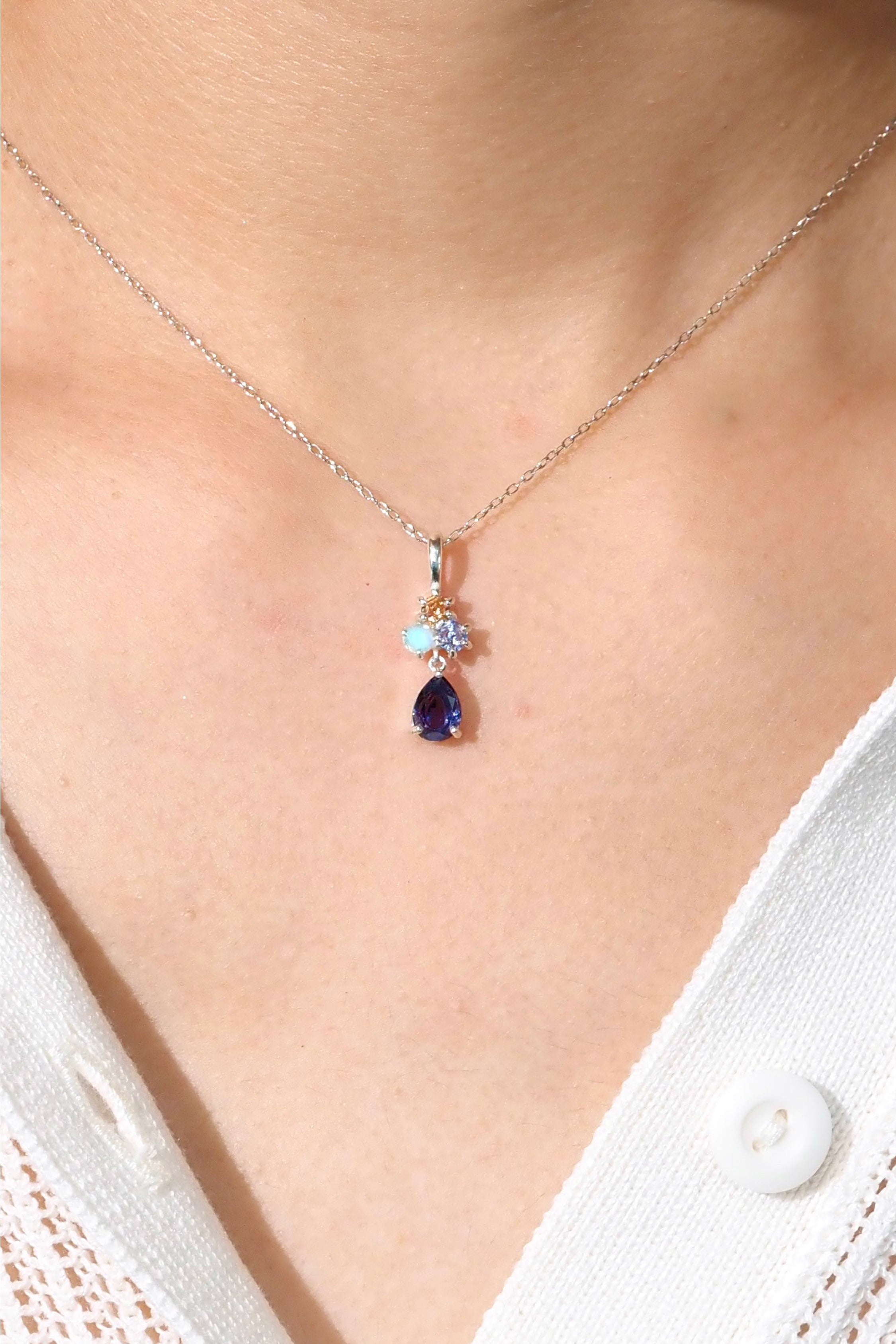 胸元にしずくが揺れるたび、色彩の物語が広がるコンビストーンチャーム。