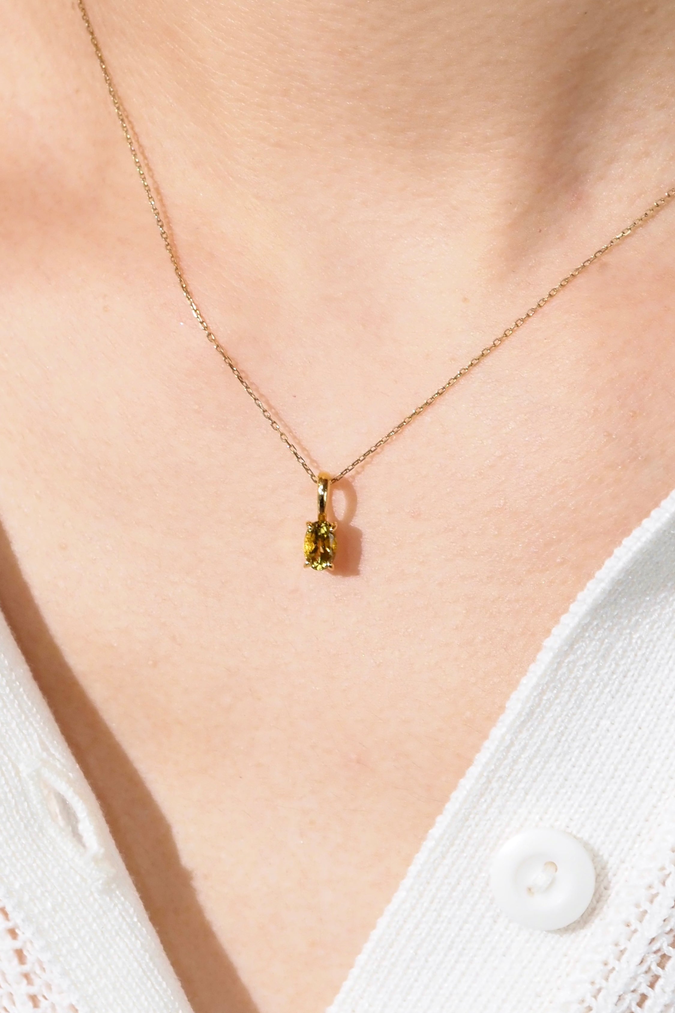 コンゴ産の極上イエロートルマリンをオーバルカットで仕立て、イエローゴールドの爪留めでセット。
