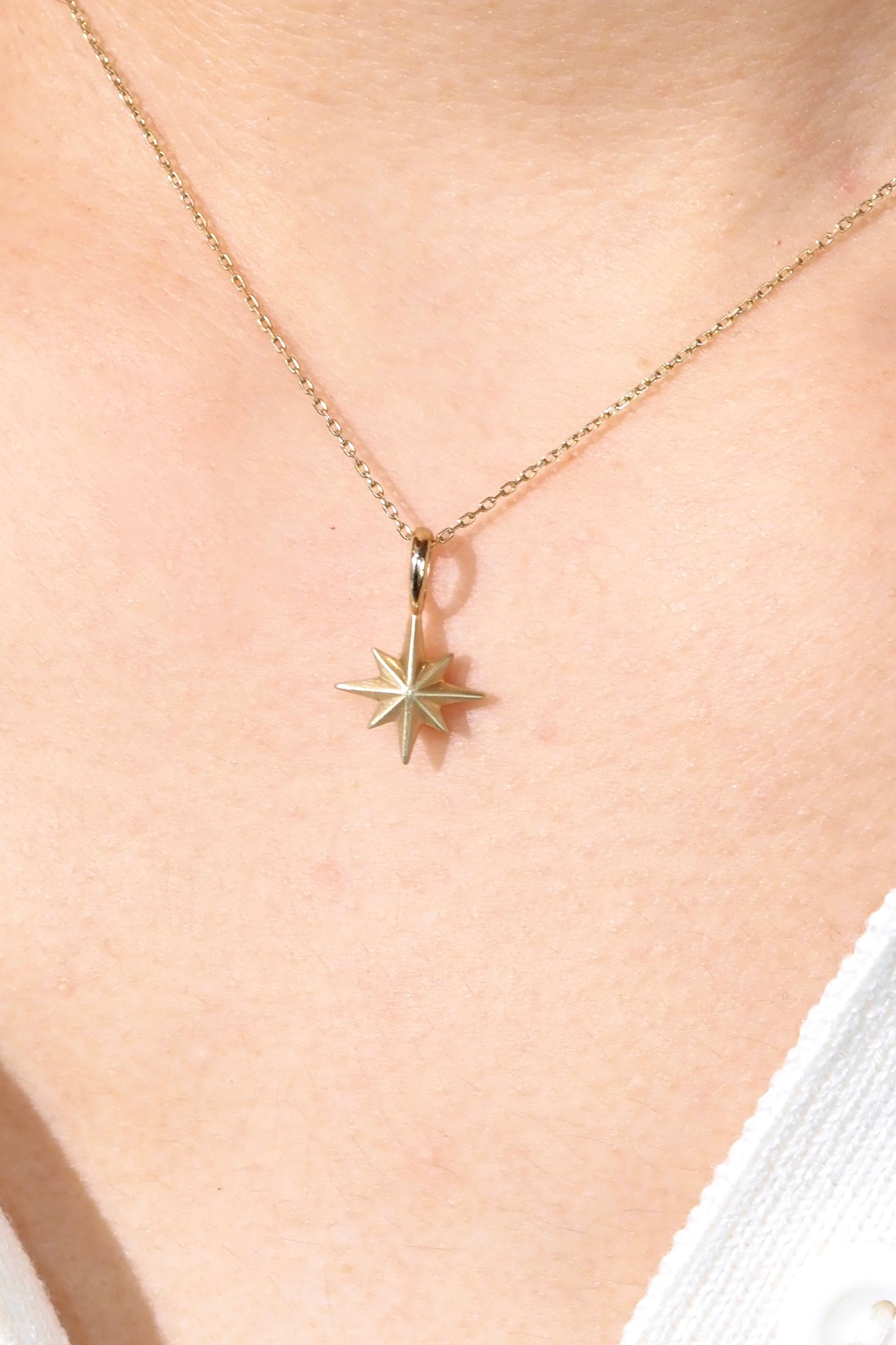 アンティークの趣とモダンなエッジを併せ持つ、気品ある星のモチーフが胸元で軽やかにきらめきます。シャンパンゴールドの温かみある色合いが、上品さと柔らかさを両立。
