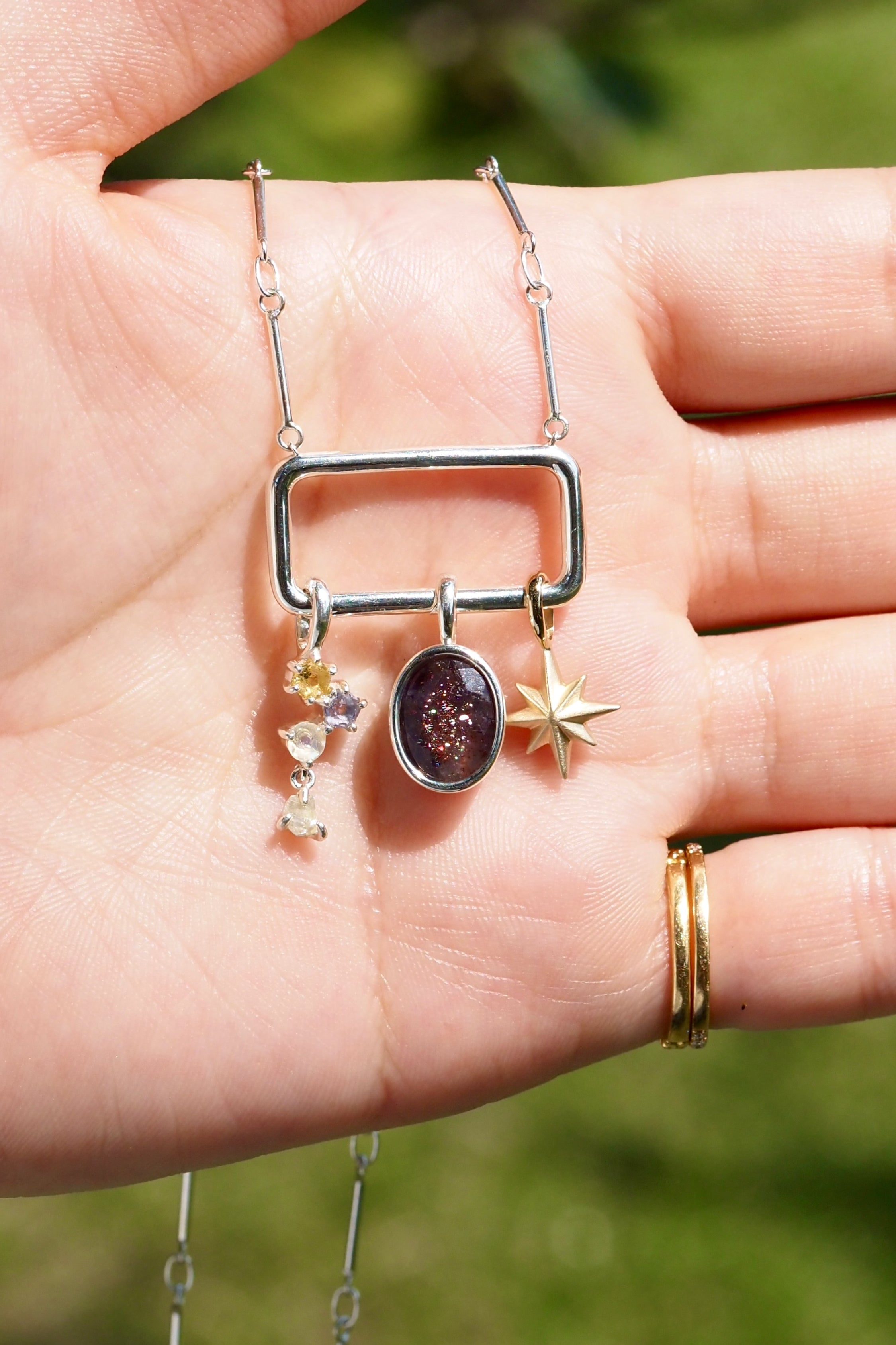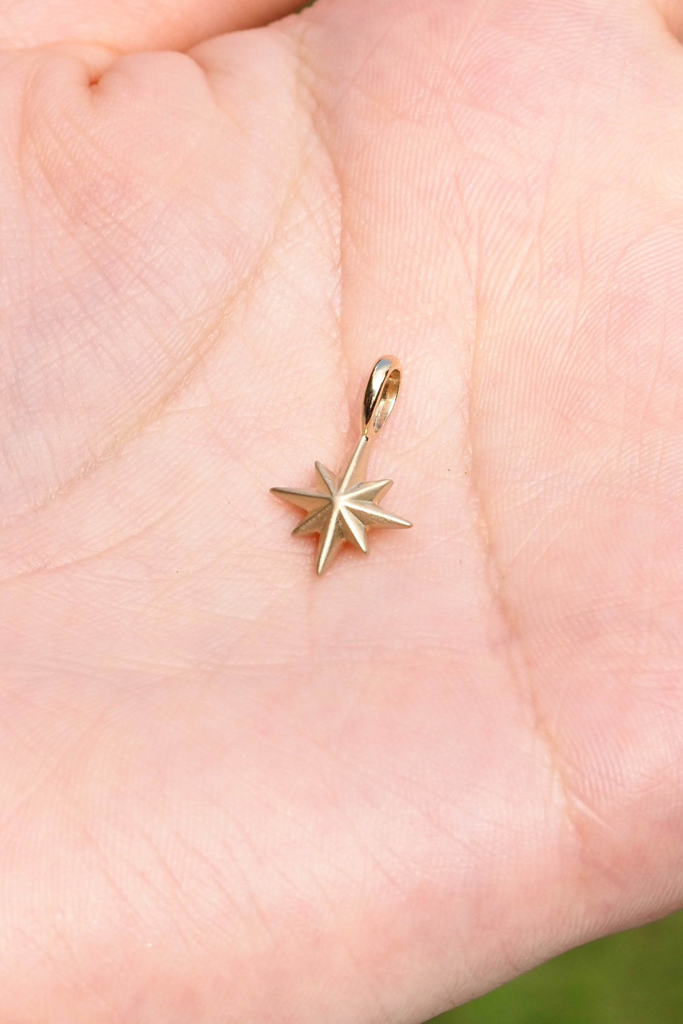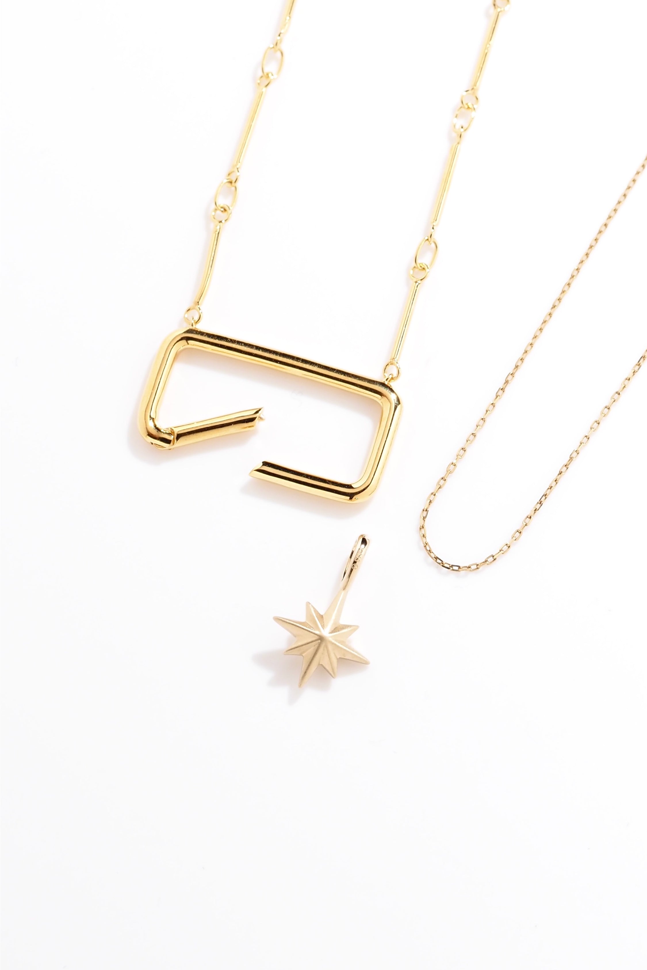 夜空から降り注ぐ一瞬の煌めきを閉じ込めた、立体的な8芒星デザインのチャーム。単体でも、他のチャームとの重ね付けでも美しく輝きます。