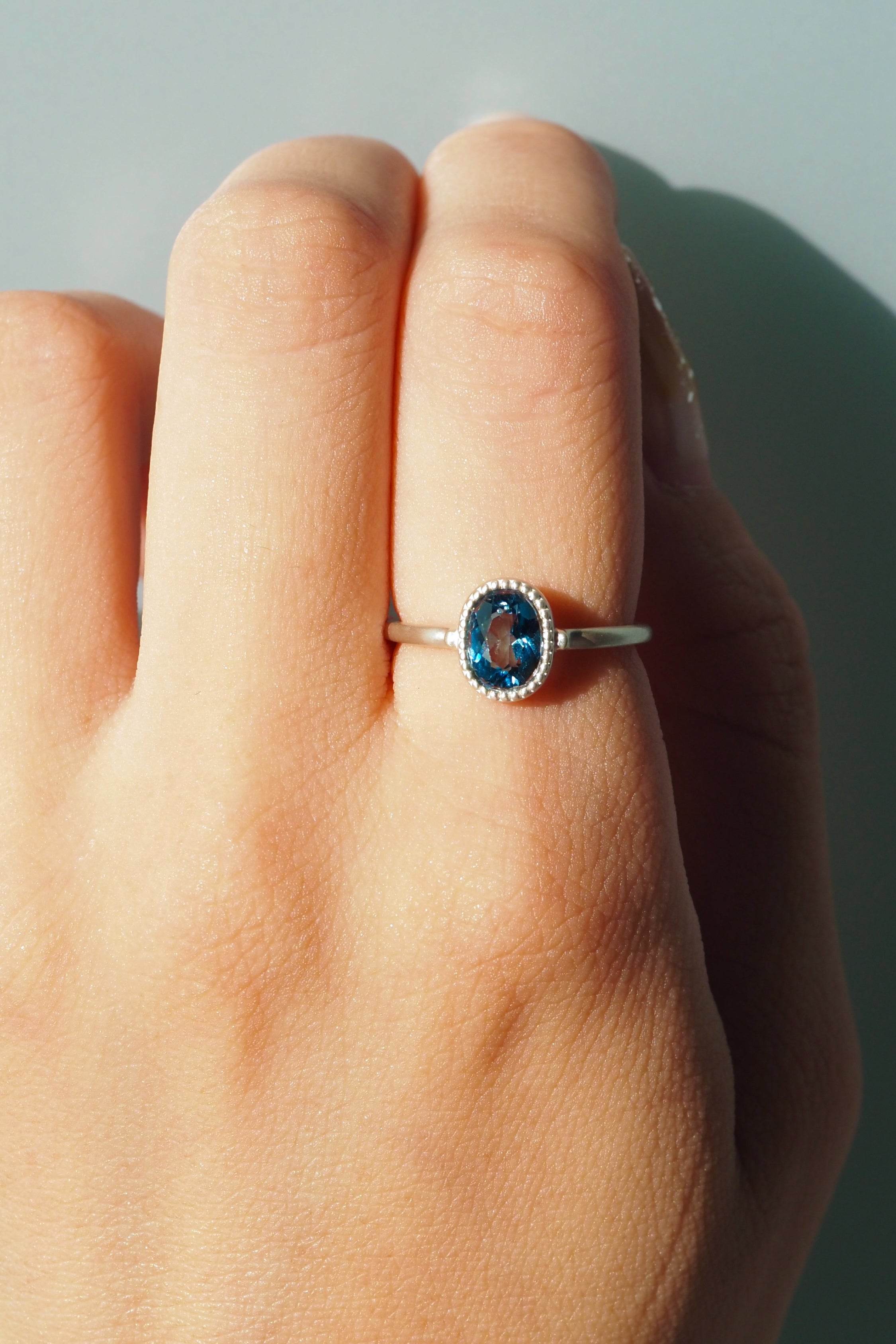 深海のような静謐な青 ー ロンドンブルートパーズ・ミルグレインリング