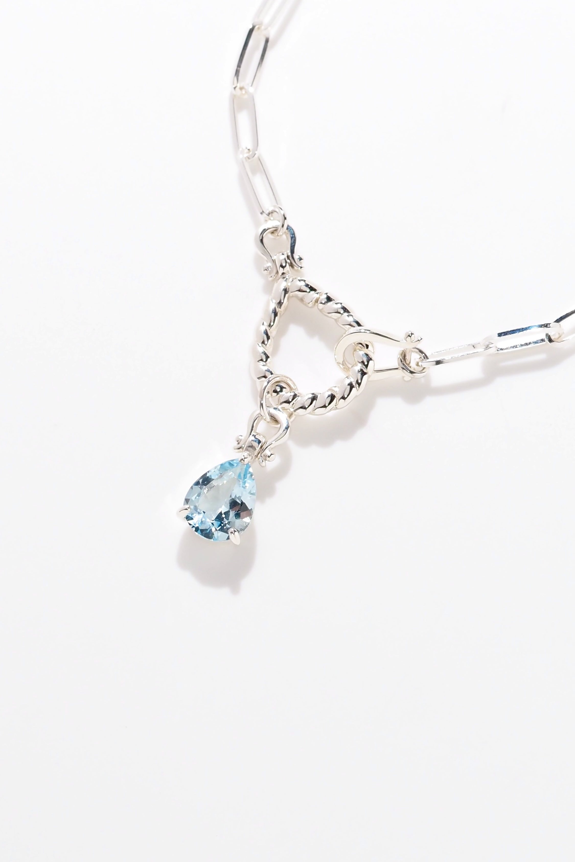 光沢仕上げのスターリングシルバーとアクアマリンの透明感が共鳴し合い、洗練された存在感を演出。