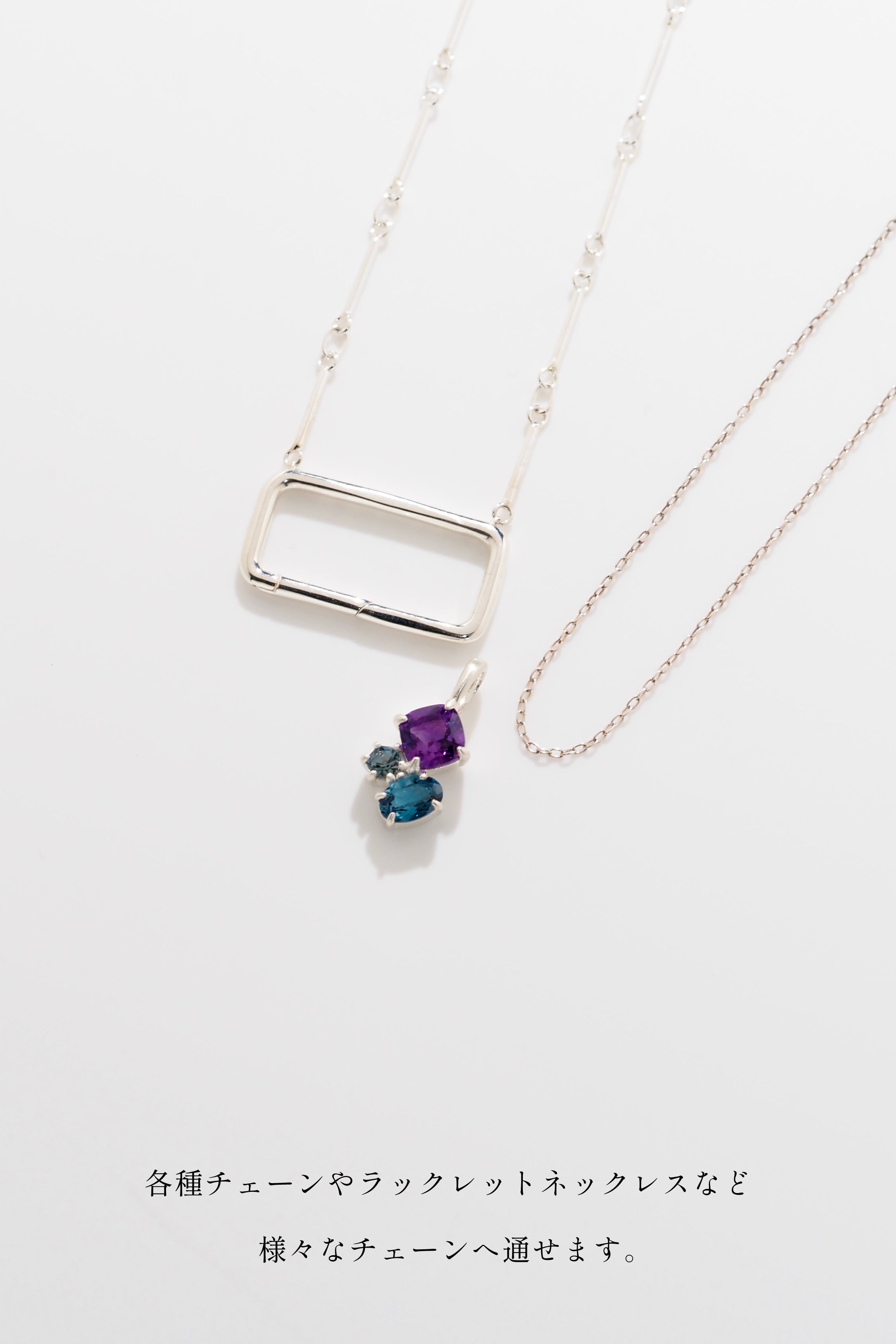 小ぶりながらも3種の宝石が奏でるコントラストは胸元を鮮やかに彩り、単品での使用はもちろん、他のチャームとの重ね付けにも映える万能なデザインです。