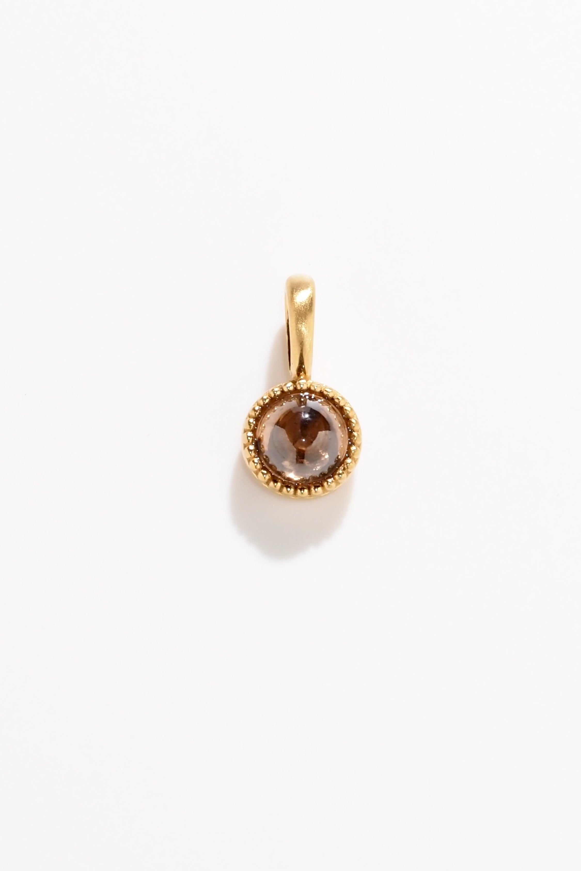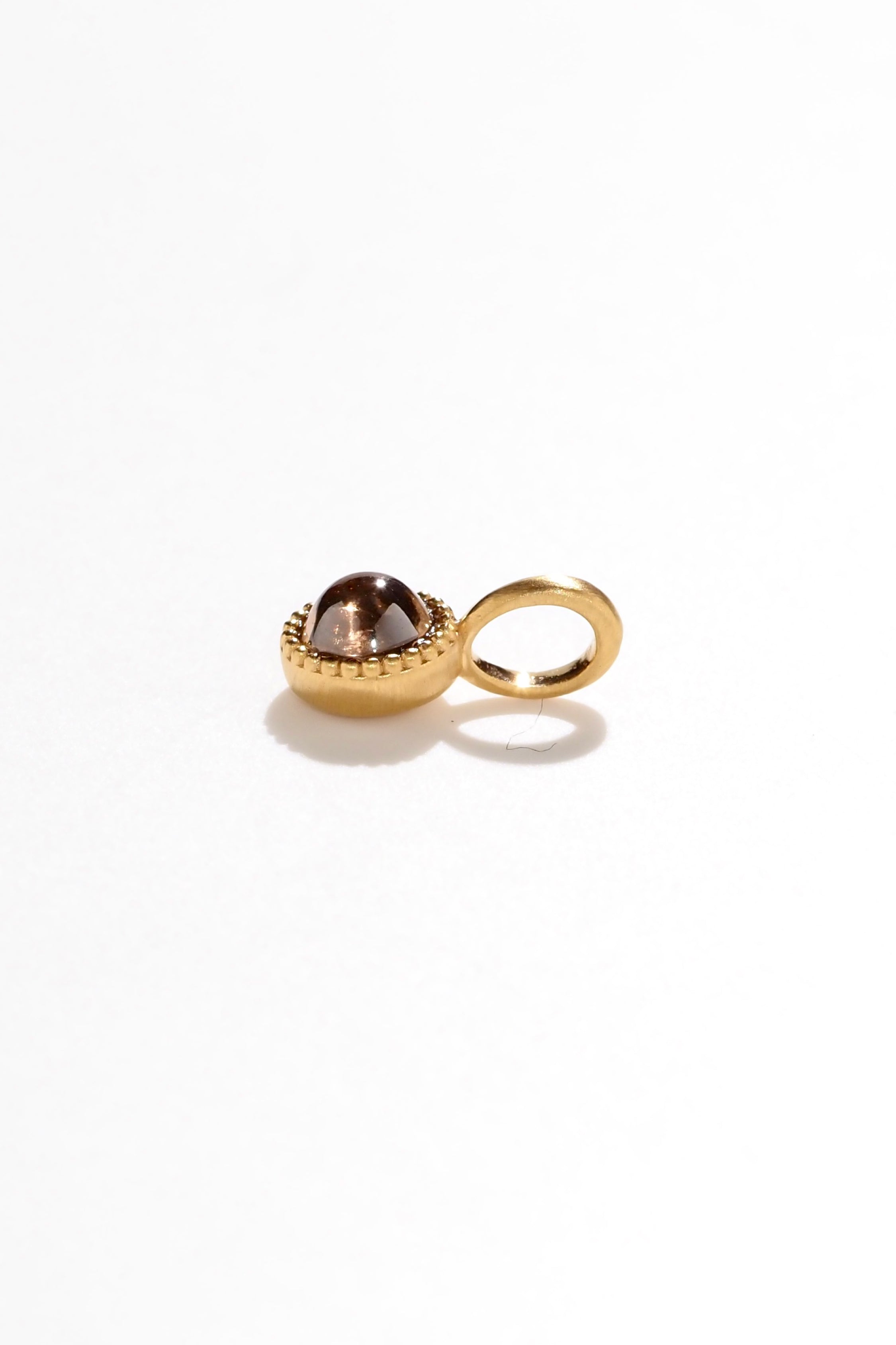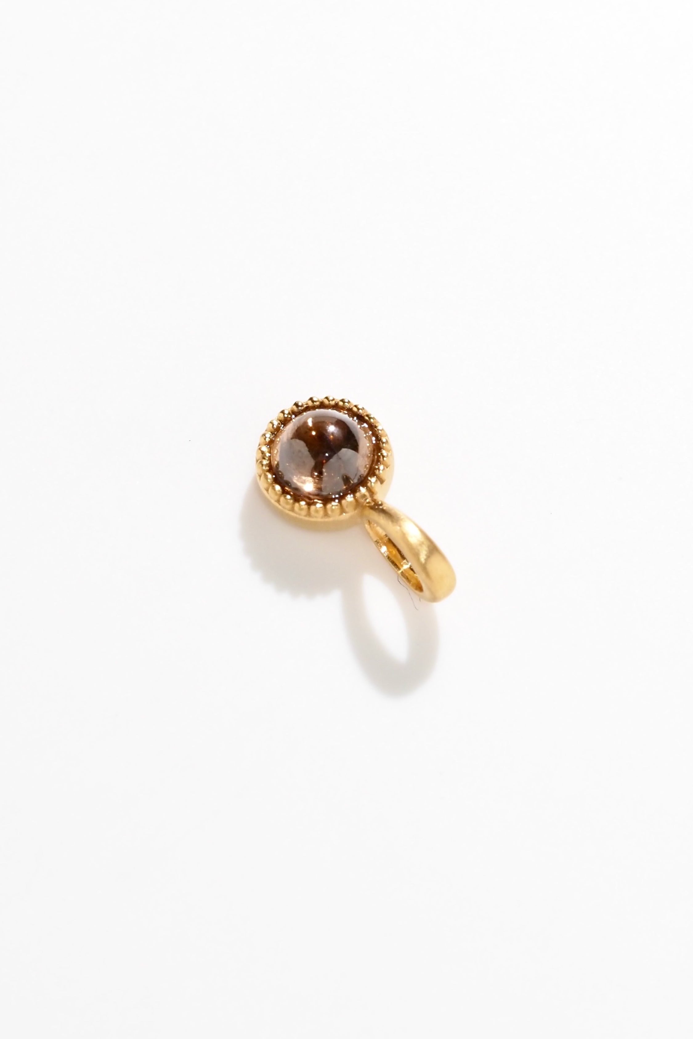 ぷっくりと丸みを帯びたカボションカットが、ブリリアントカットとは異なる柔らかな艶めきを放ち、アンティークな趣を感じさせるチャームです。
