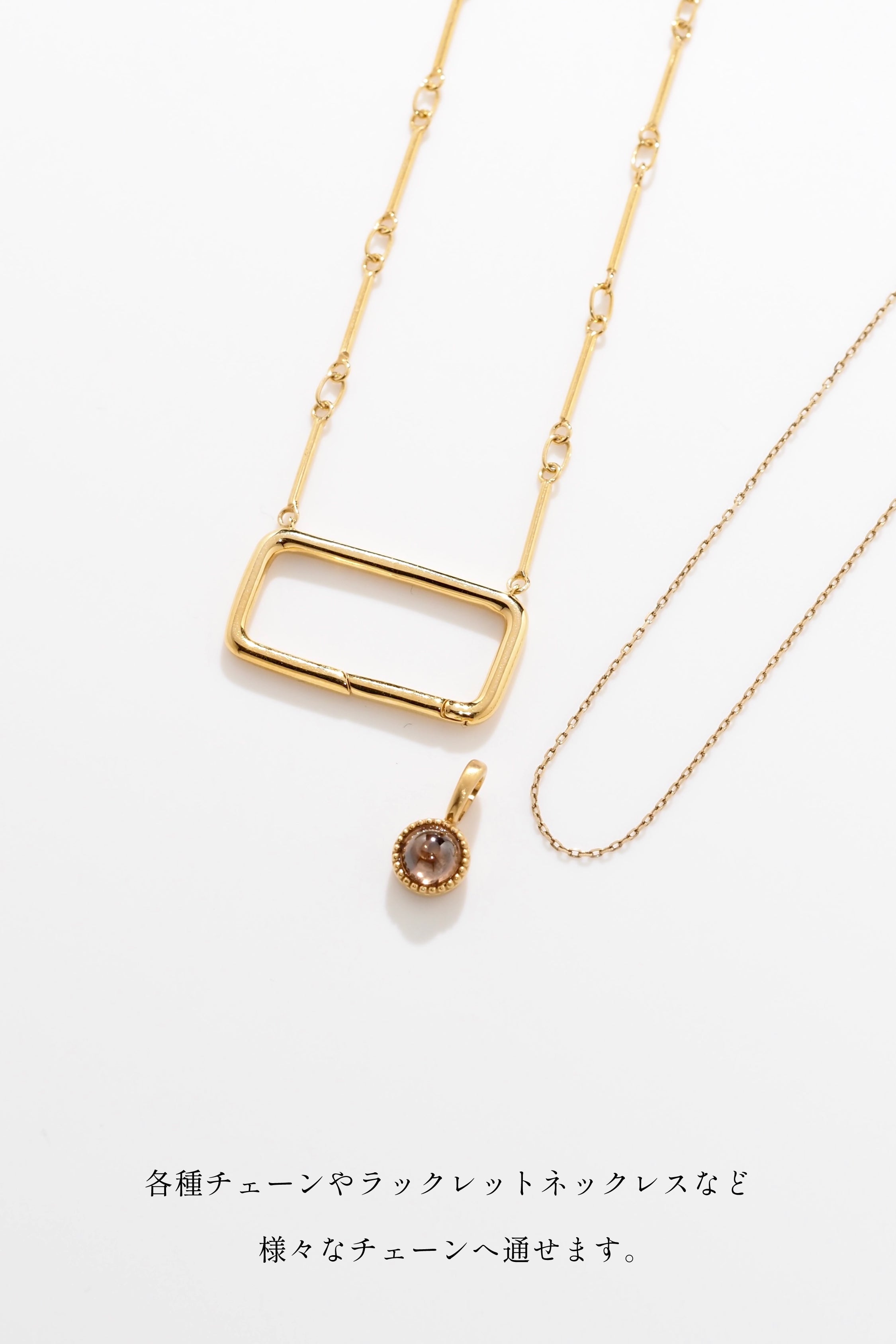 オメガループネックレスやブレスレット、クリップチェーン、華奢なチェーンなど幅広く通せる設計。