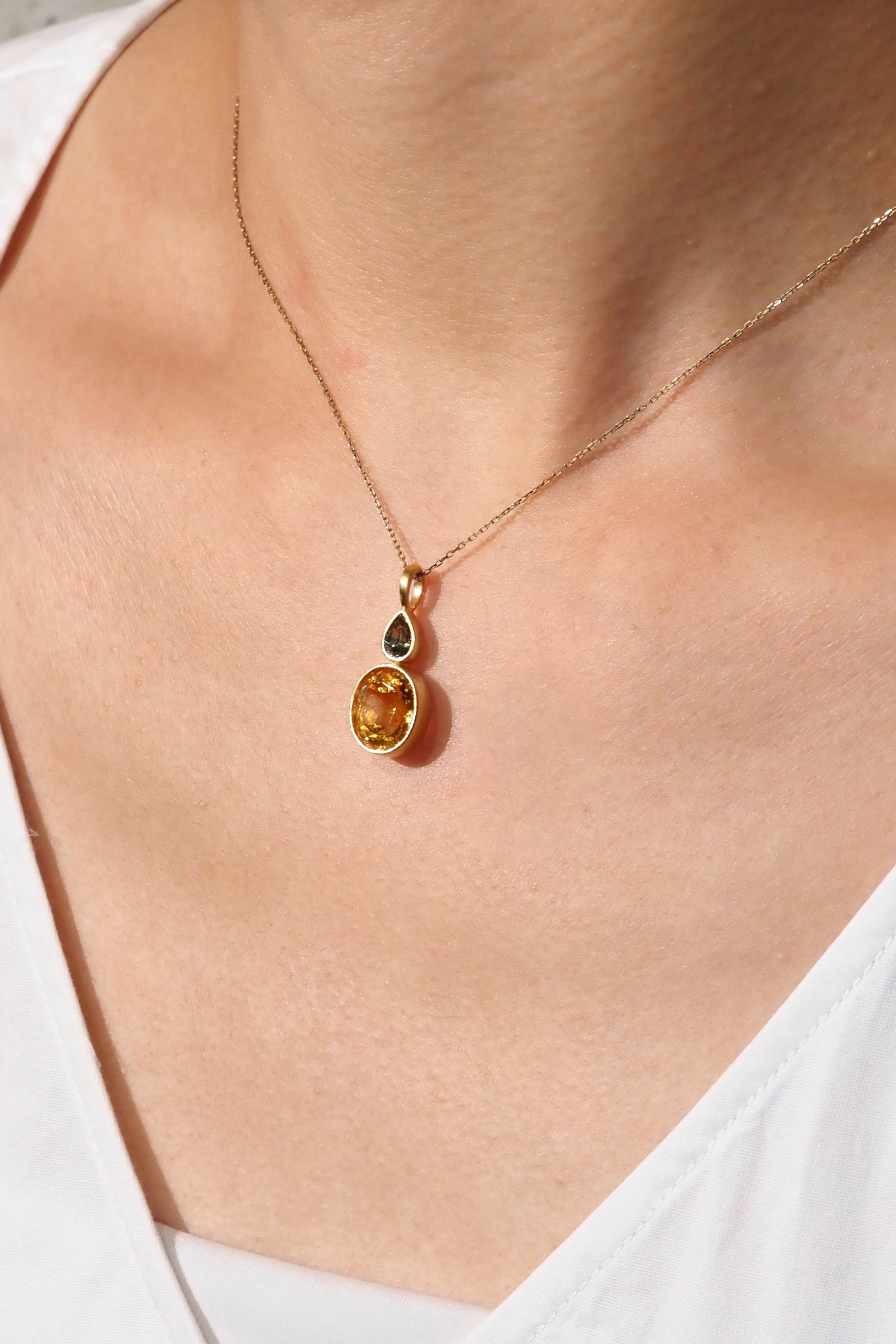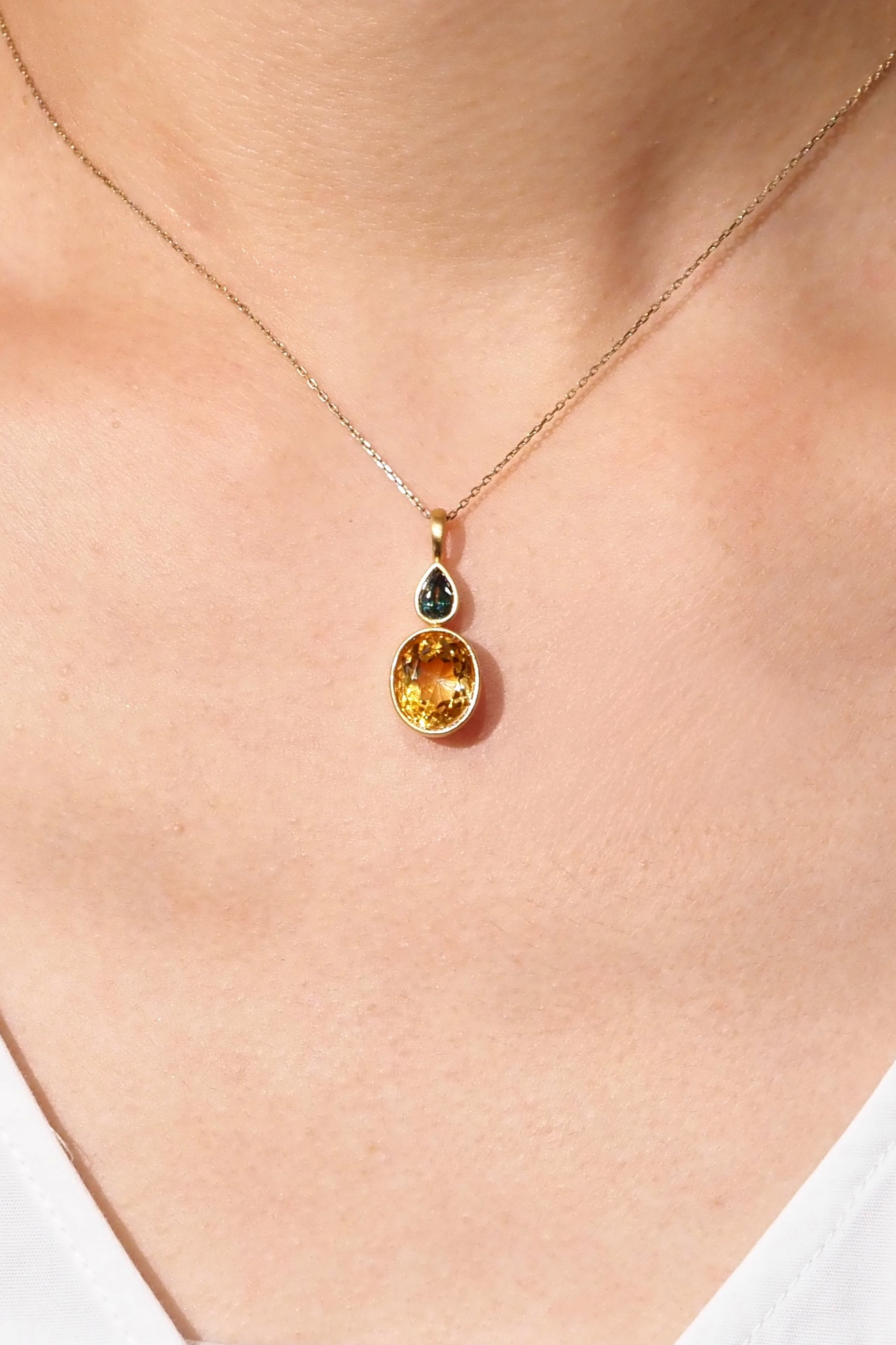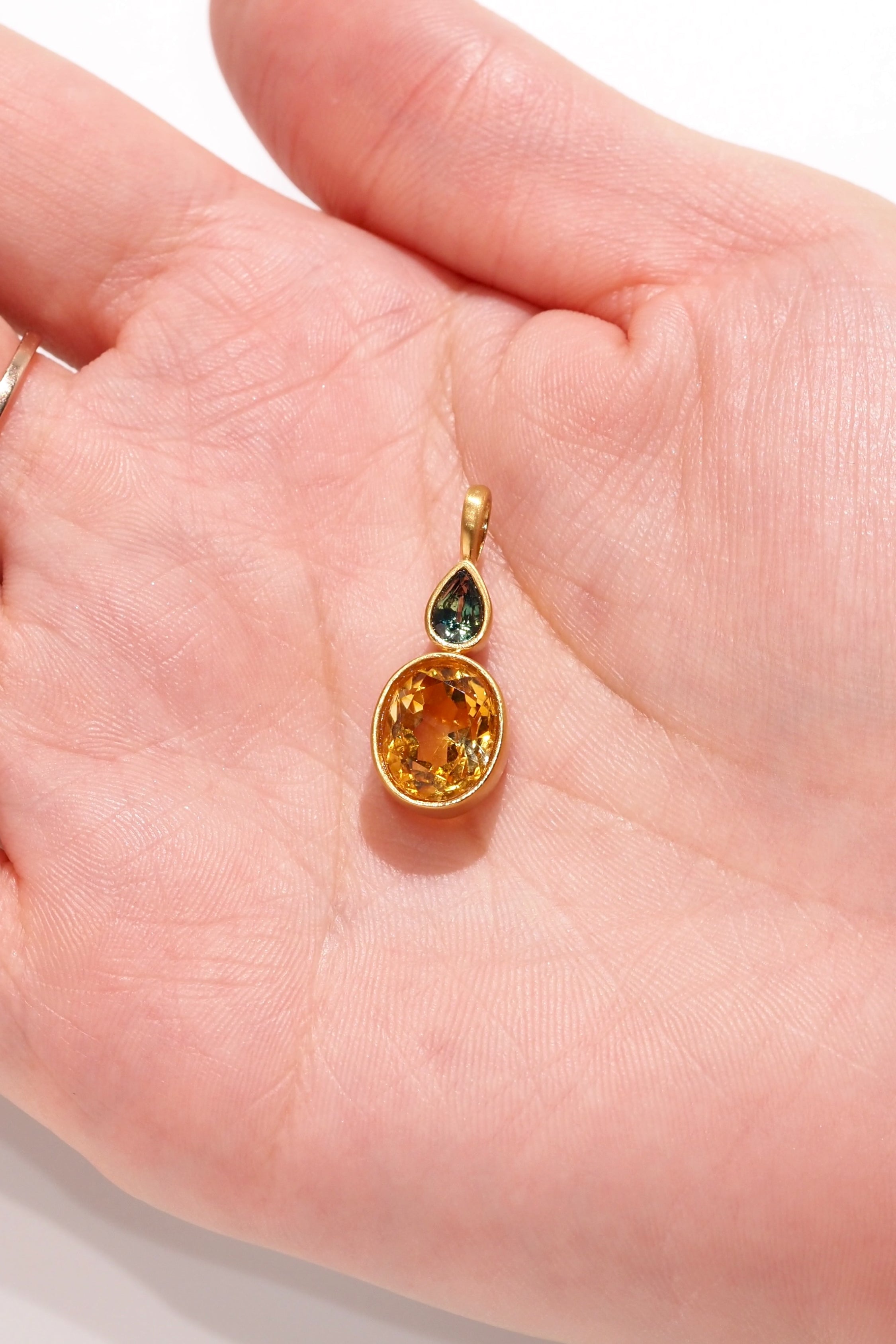 3カラットを超えるシトリンと、スリランカ産のグリーンサファイア。