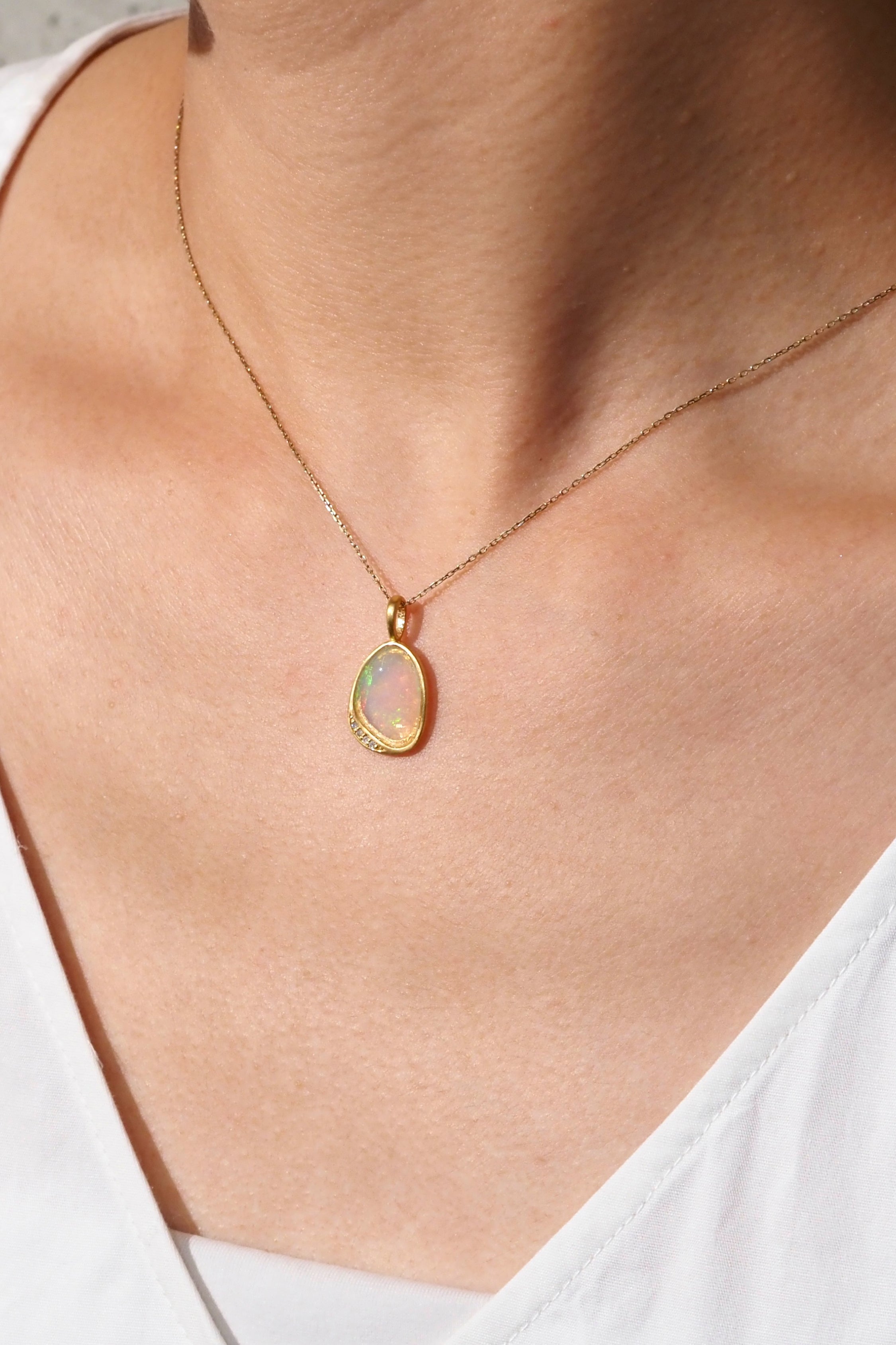 スライスローズカットならではの繊細な面の輝きが、オパールの柔らかな光を穏やかに反射し、奥行きを生み出します。