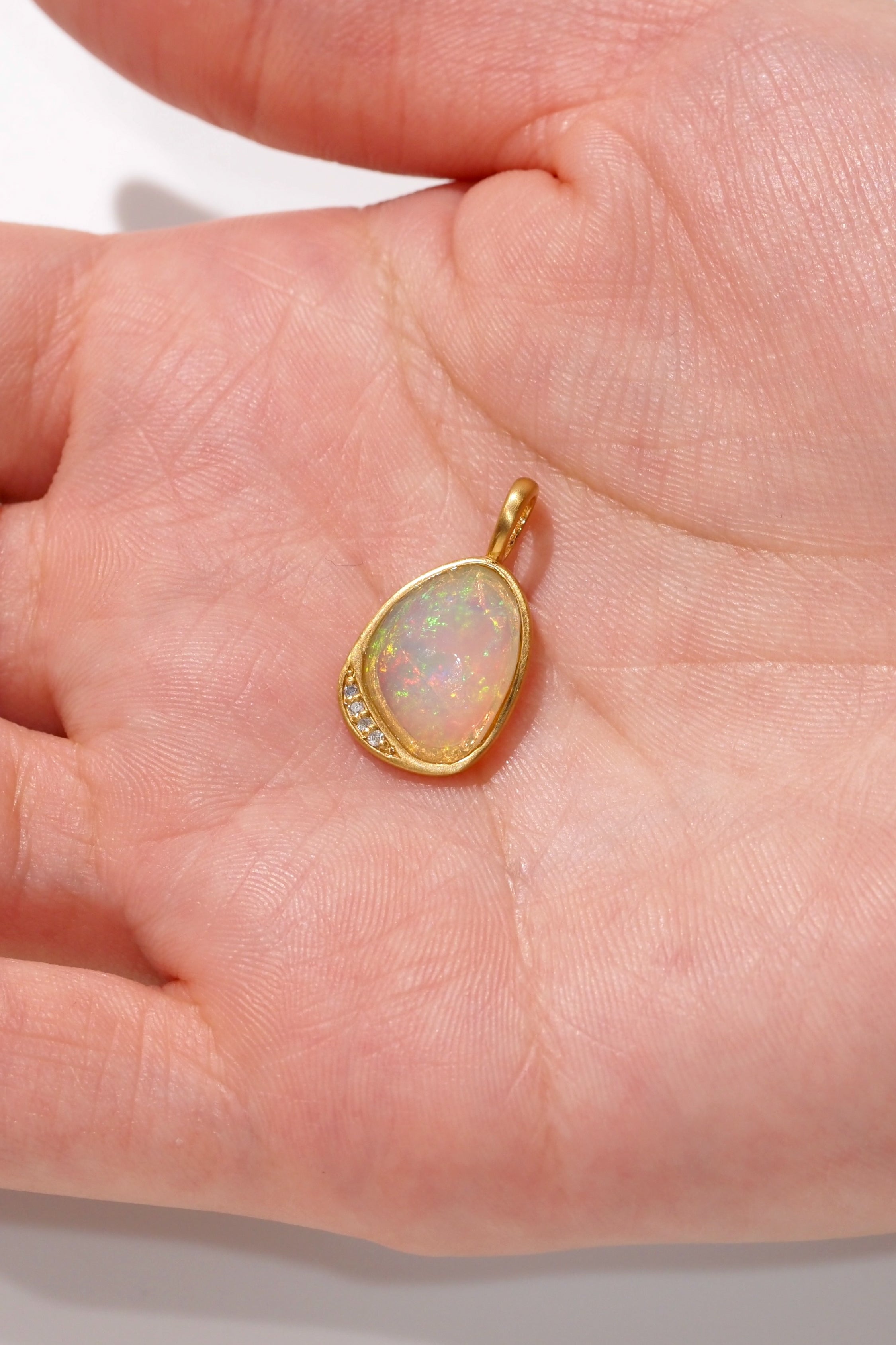 オパールを優しく包み込むようにセッティングし、その縁には、朝露のように4石のダイヤモンドを敷き詰めました。