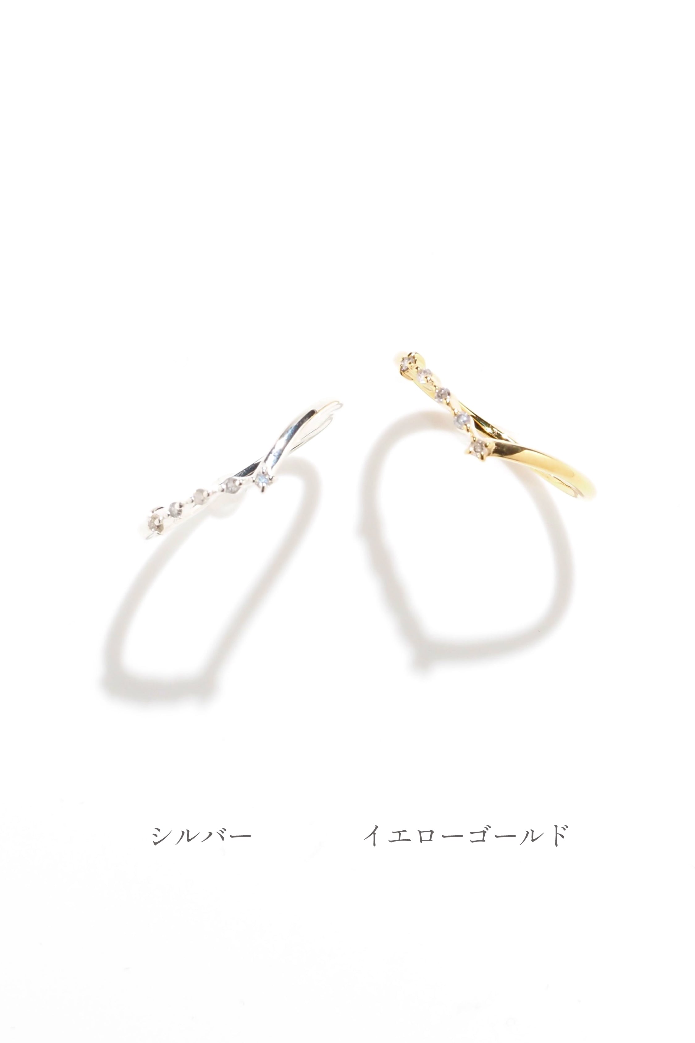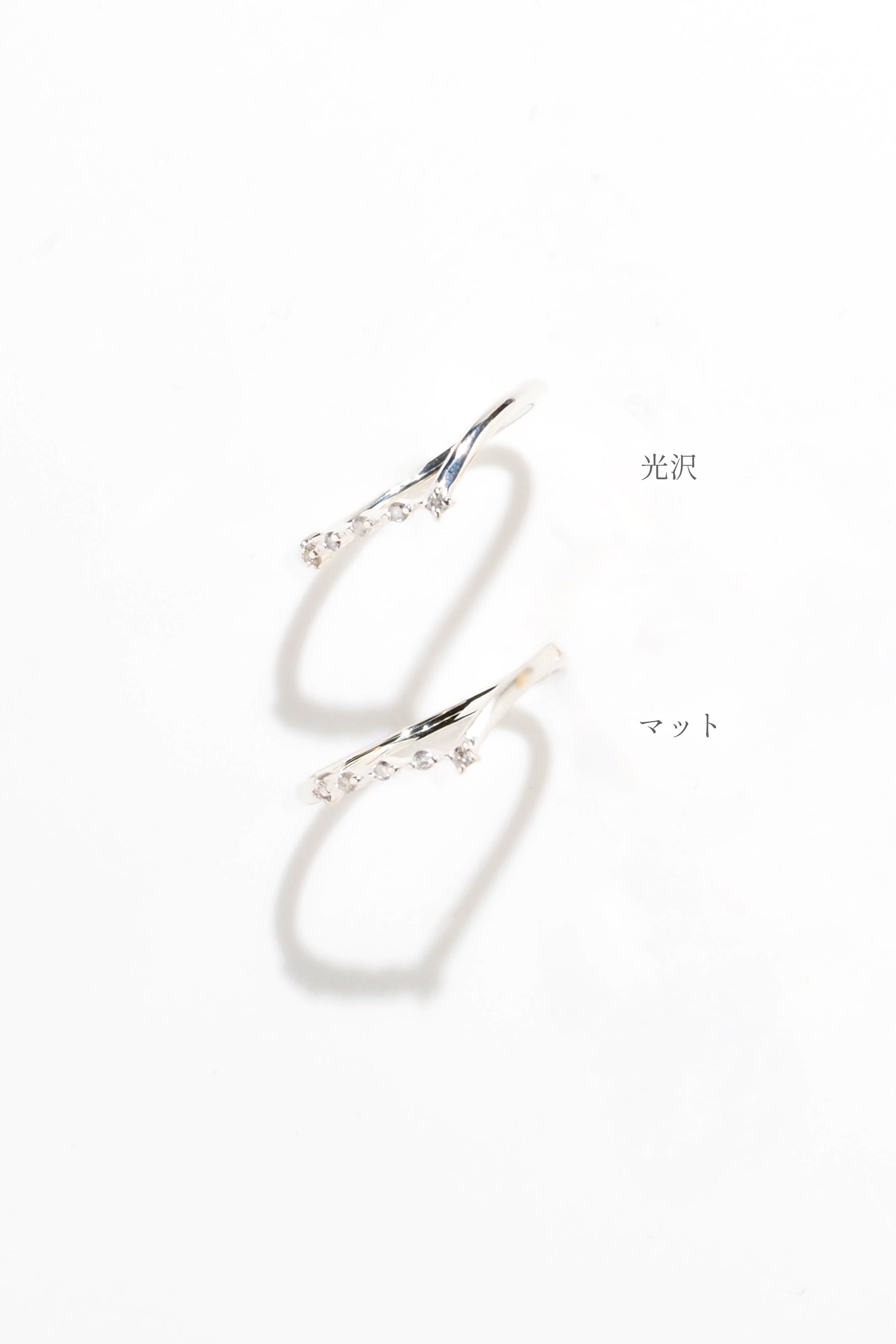 ダイヤモンド5石を片側へ、アシンメトリーに留め、流星が夜空をよぎる瞬きを閉じ込めたような華奢で美しいデザインです。