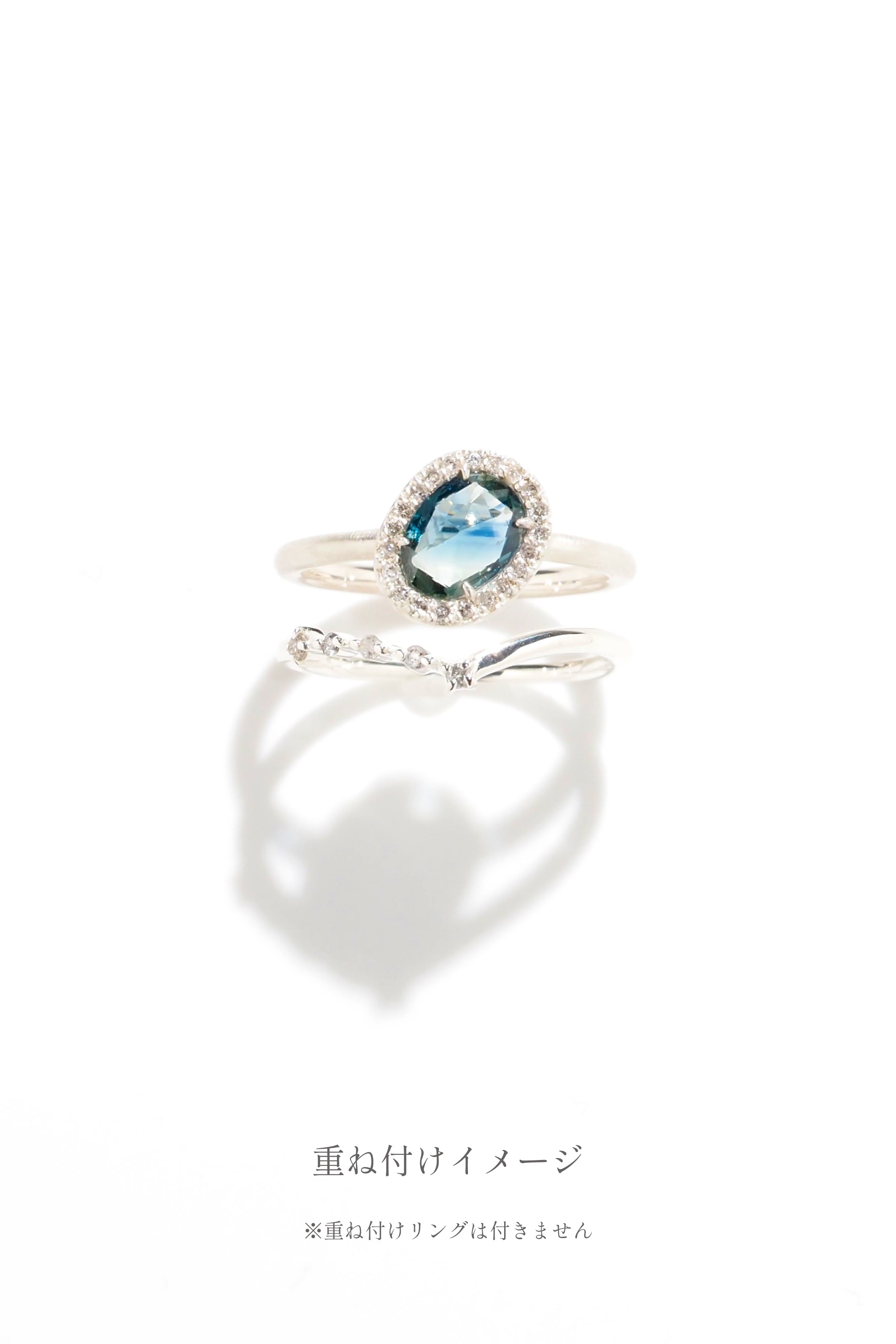 • V部分にカラーストーンリングの石座がぴたりと収まり、美しいレイヤードが完成