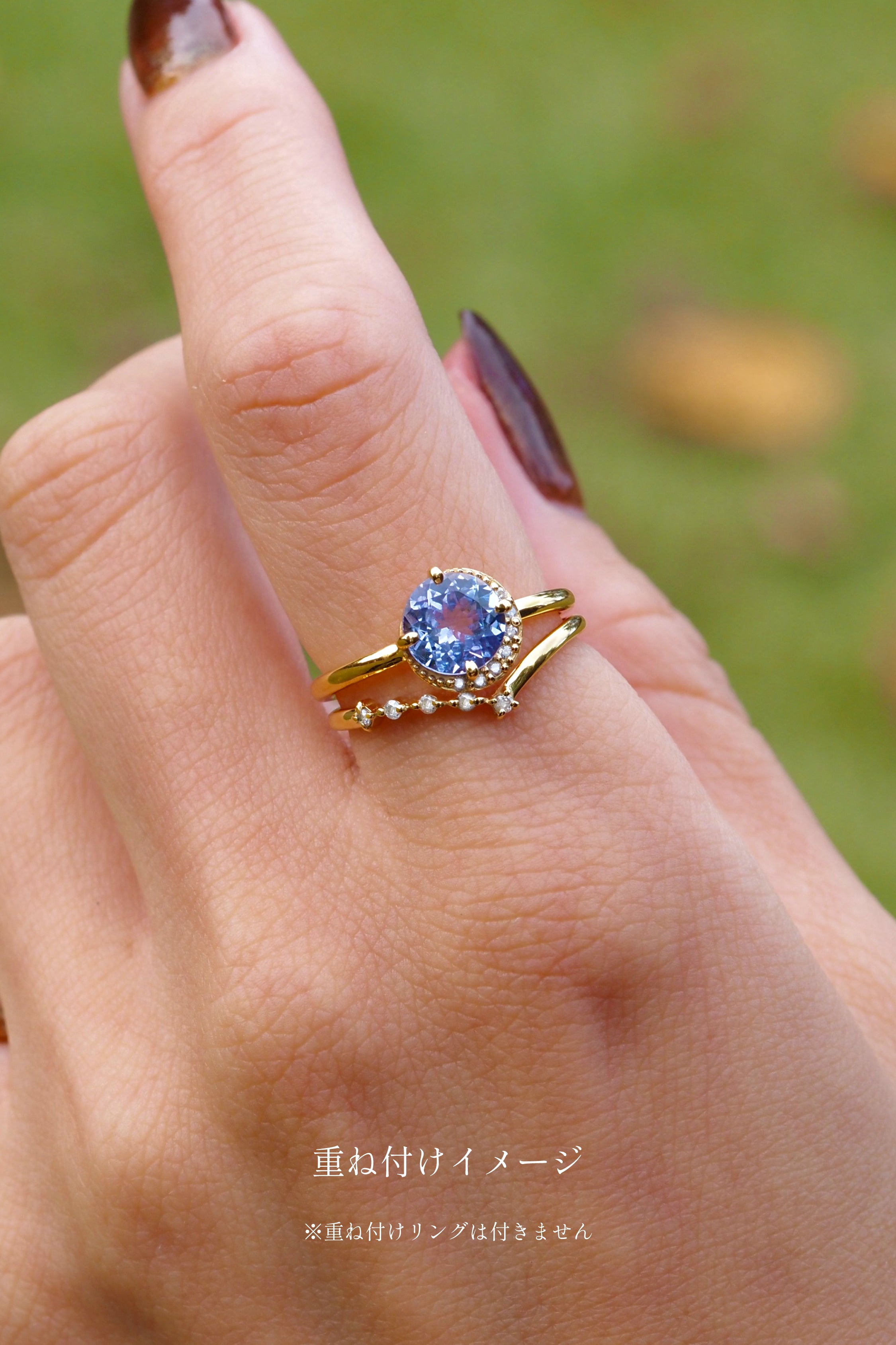 このリング最大の魅力は、カラーストーンリングとの重ね付け相性が圧倒的に良いこと。