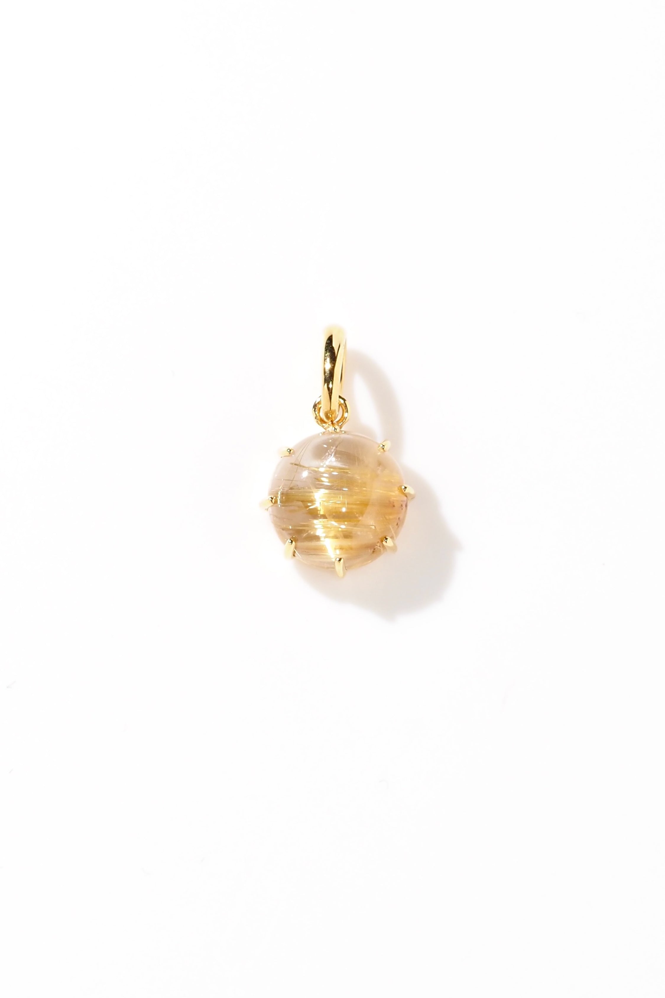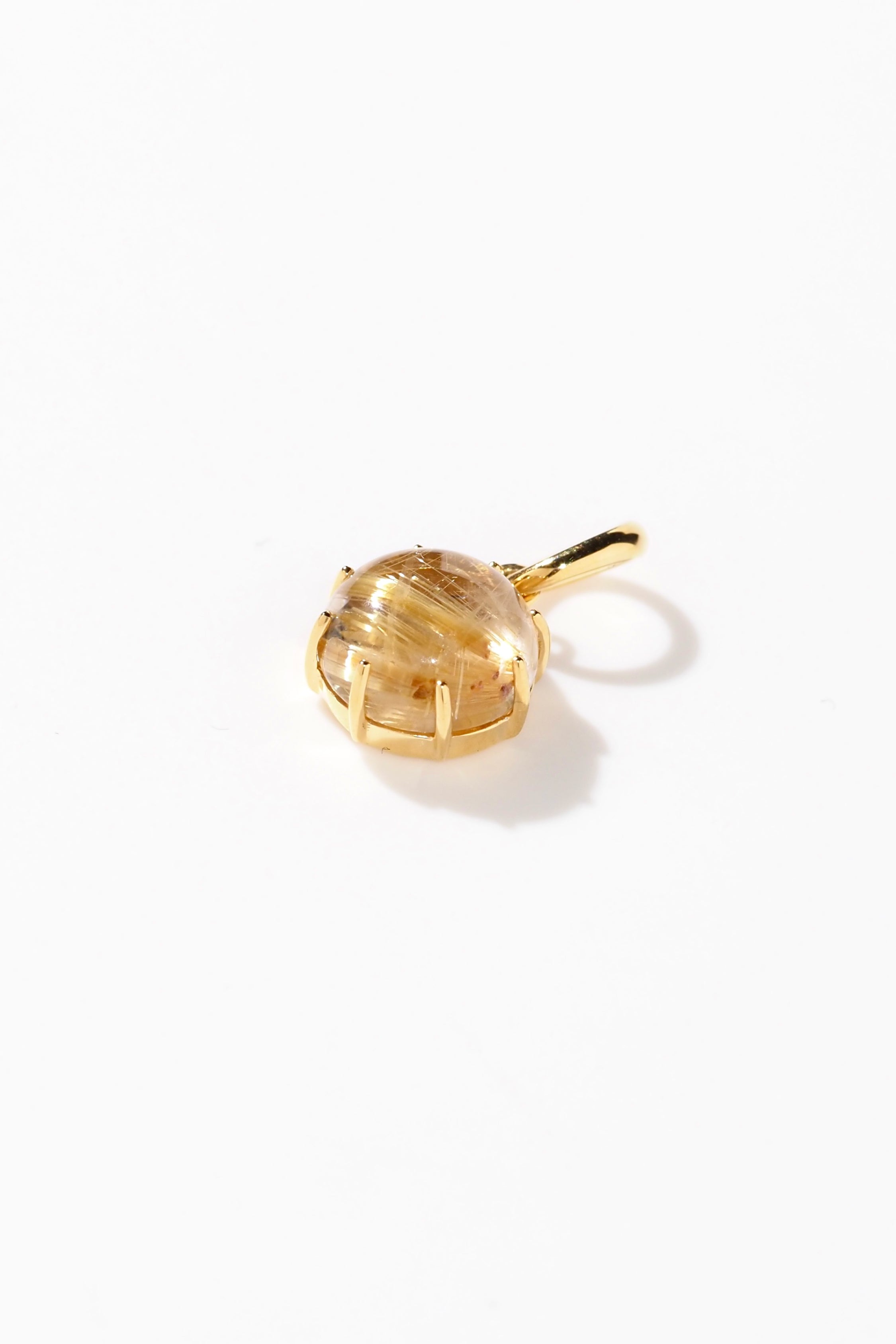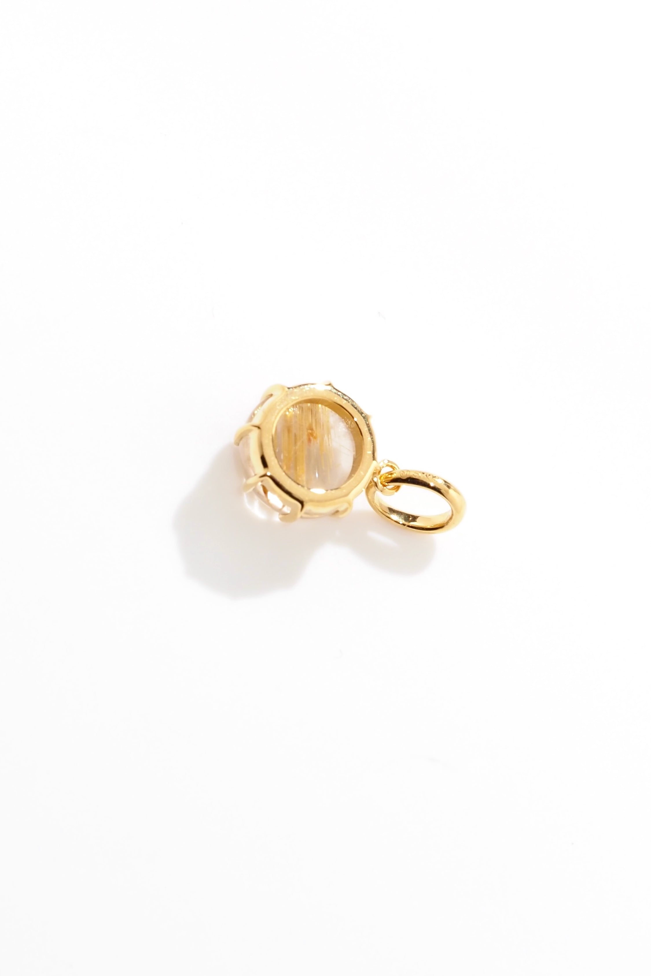 ぷっくりと愛らしいラウンドカボションに、金糸が柔らかく走る極上のゴールドルチルクォーツキャッツアイを贅沢にセットしたスイングチャーム。