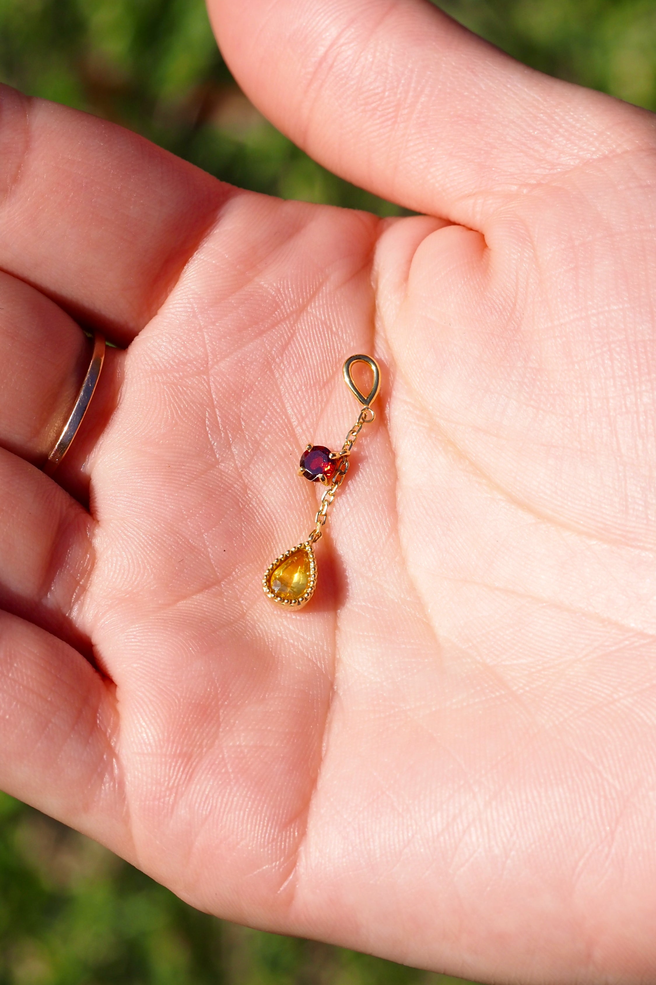 【NEW】レッドスピネル&サファイア・チェーンチャーム・イエローゴールド002|眠れる宝石