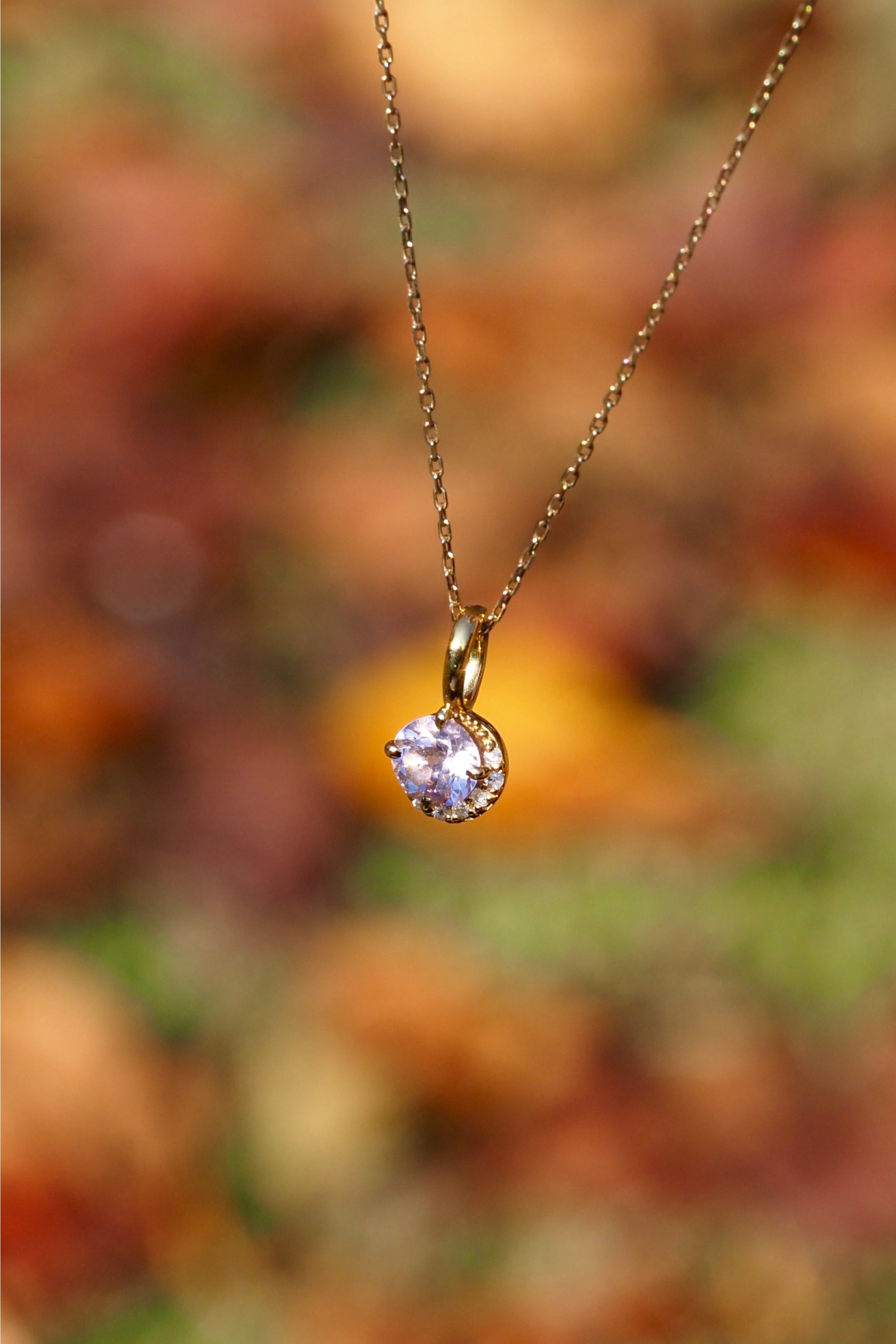 繊細な光のニュアンスまで美しく映し出すラウンドカットで、日差しの中でも室内光でも可憐な輝きを放ちます。
