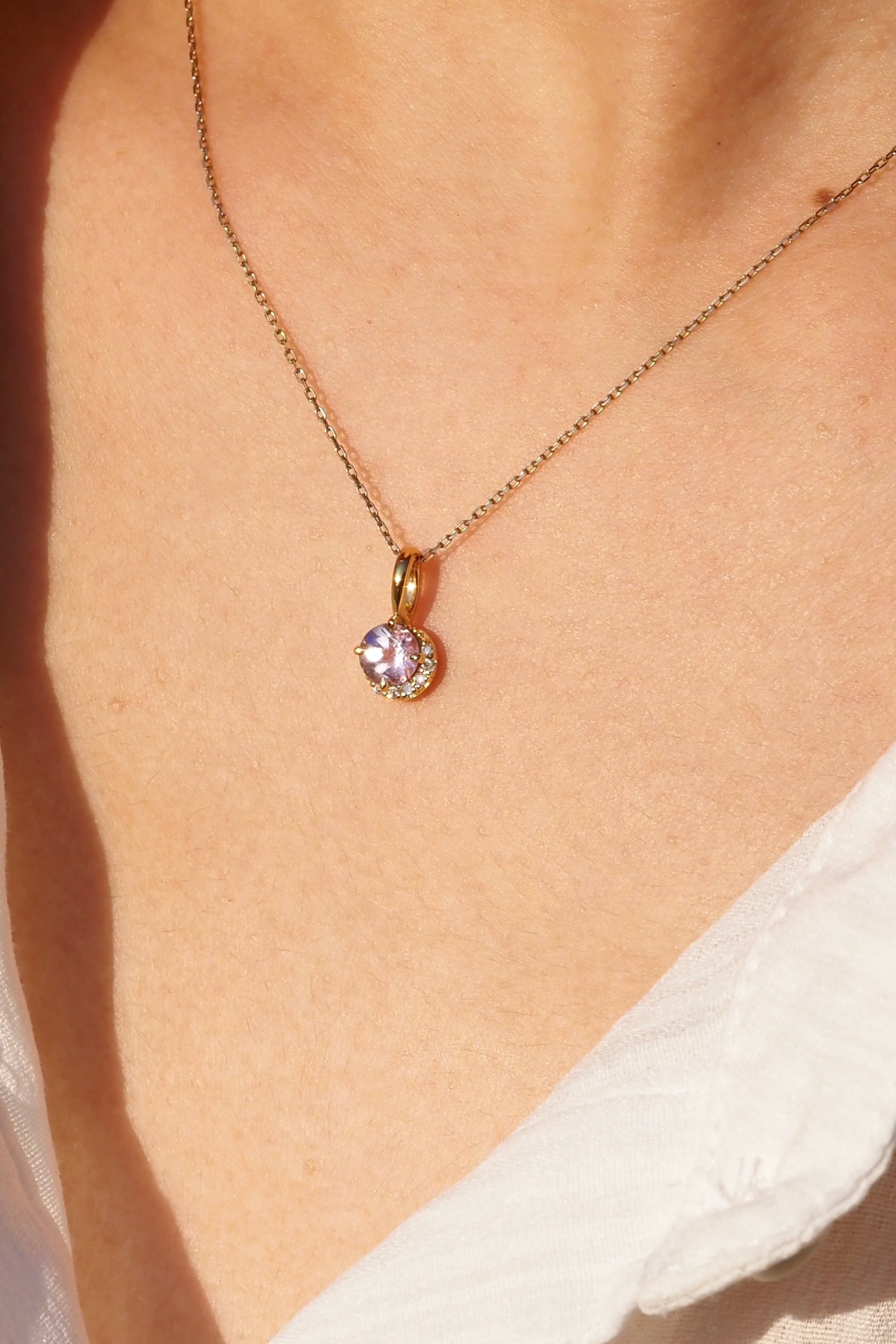【NEW】ピンクアメジスト・ダイヤモンドルナチャーム・イエローゴールド001|眠れる宝石