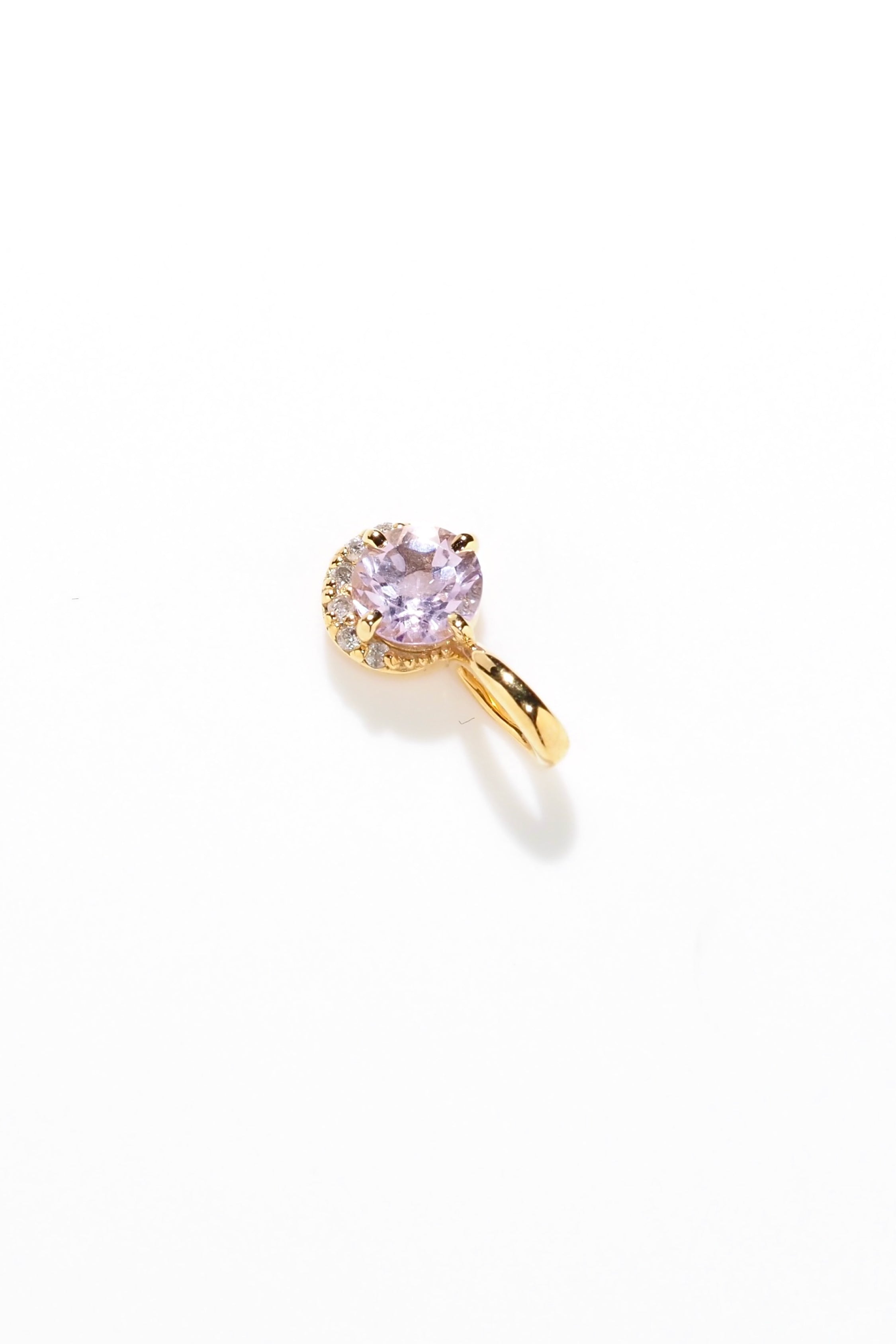 ピンクアメジストの片側を、天然ダイヤモンド(6石・合計0.03ct)で三日月状に囲む“ダイヤモンドルナデザイン”を採用。