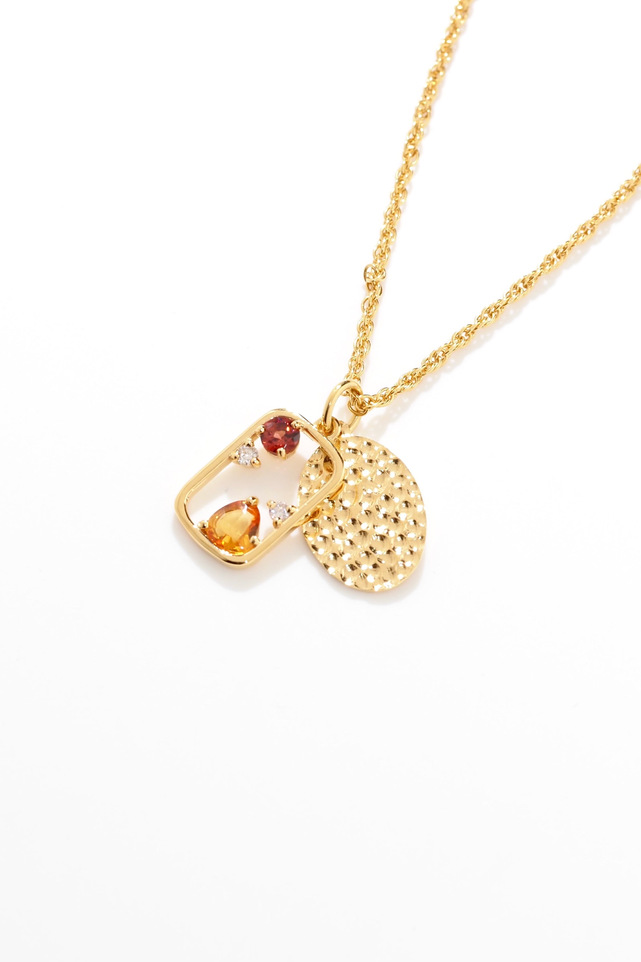 【NEW】ダイヤモンド&スピネル&サファイア・月景ダブルプレートネックレス・イエローゴールド001|ミックス宝石