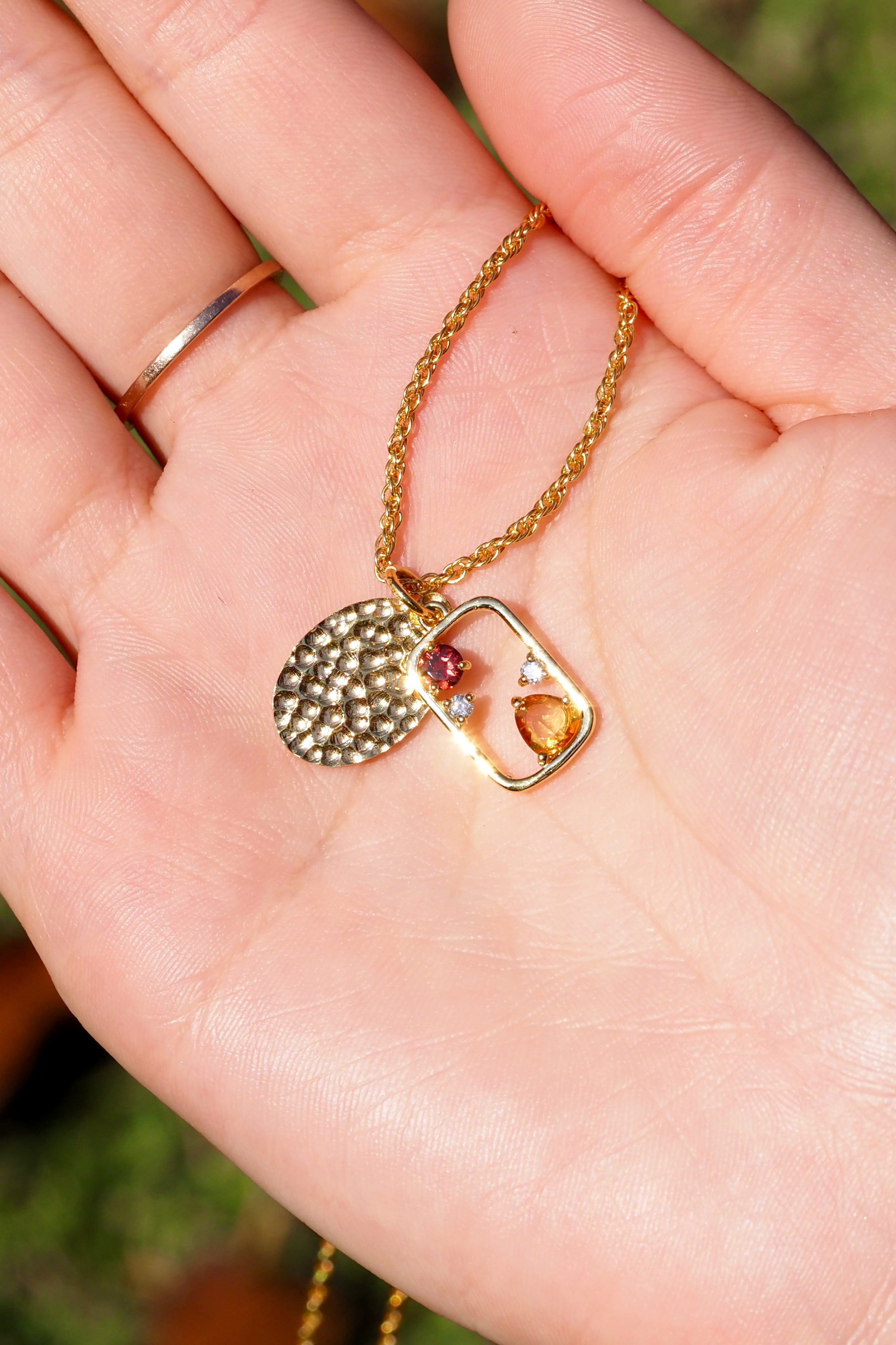 季節の風景と月光の情景が重なり合うように設計された、MASHIROオリジナルのダブルプレートネックレス。