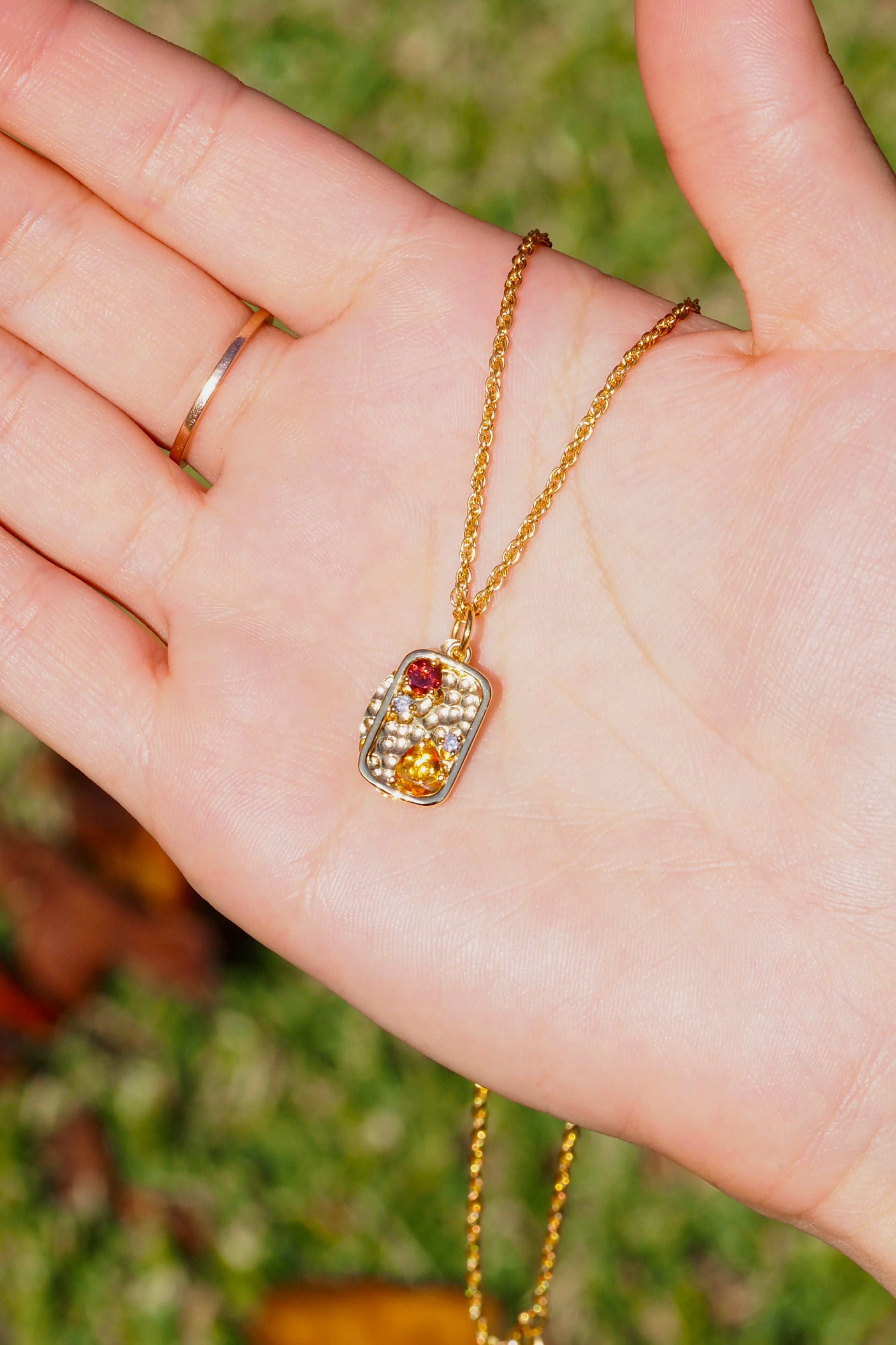 宝石それぞれの色彩が混じり合い、ひとつの小さな風景画のような美しい表情を見せてくれます。