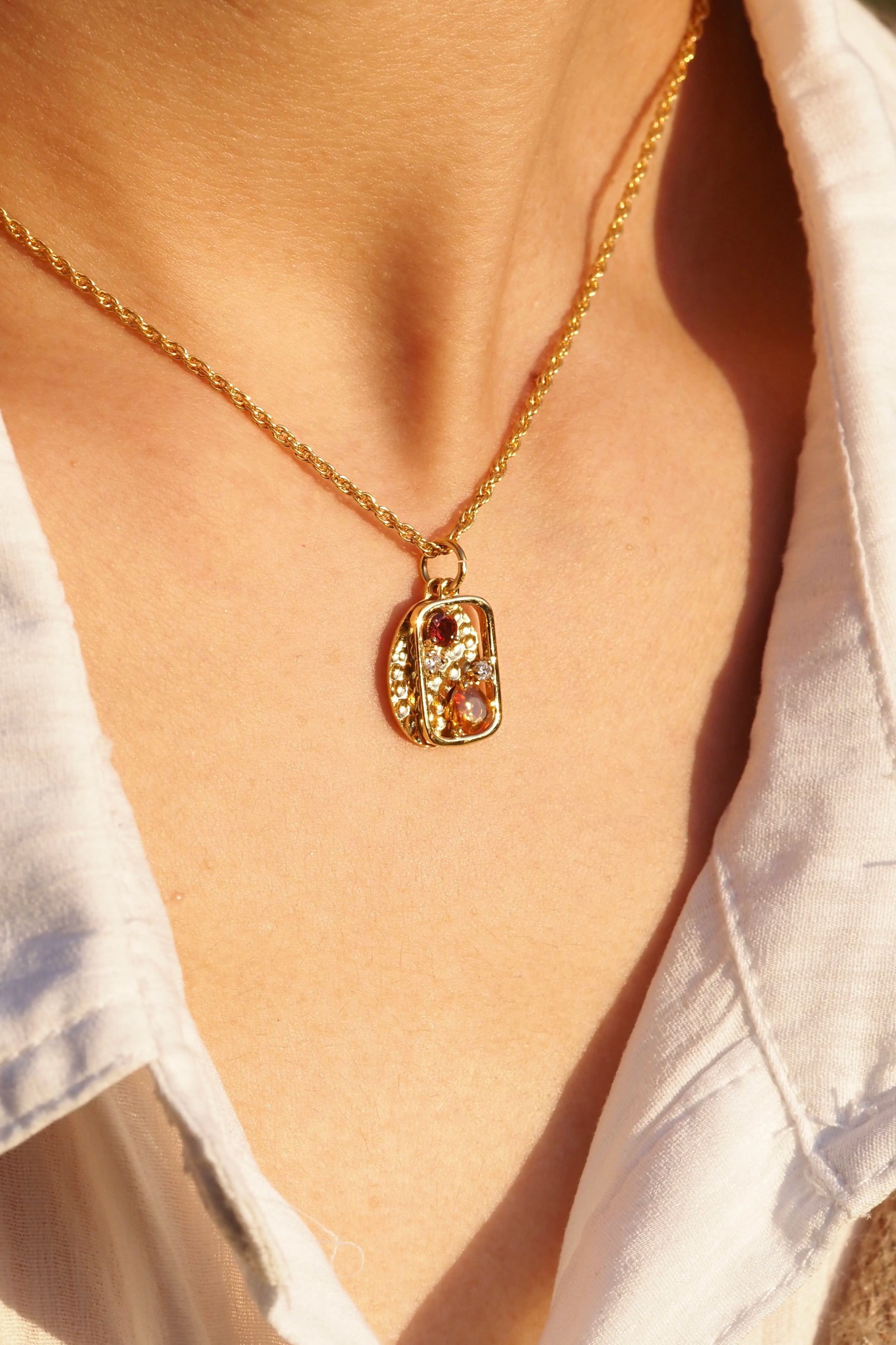二枚のプレートが重なり、動きながら立体的な陰影を生む特別なネックレス。