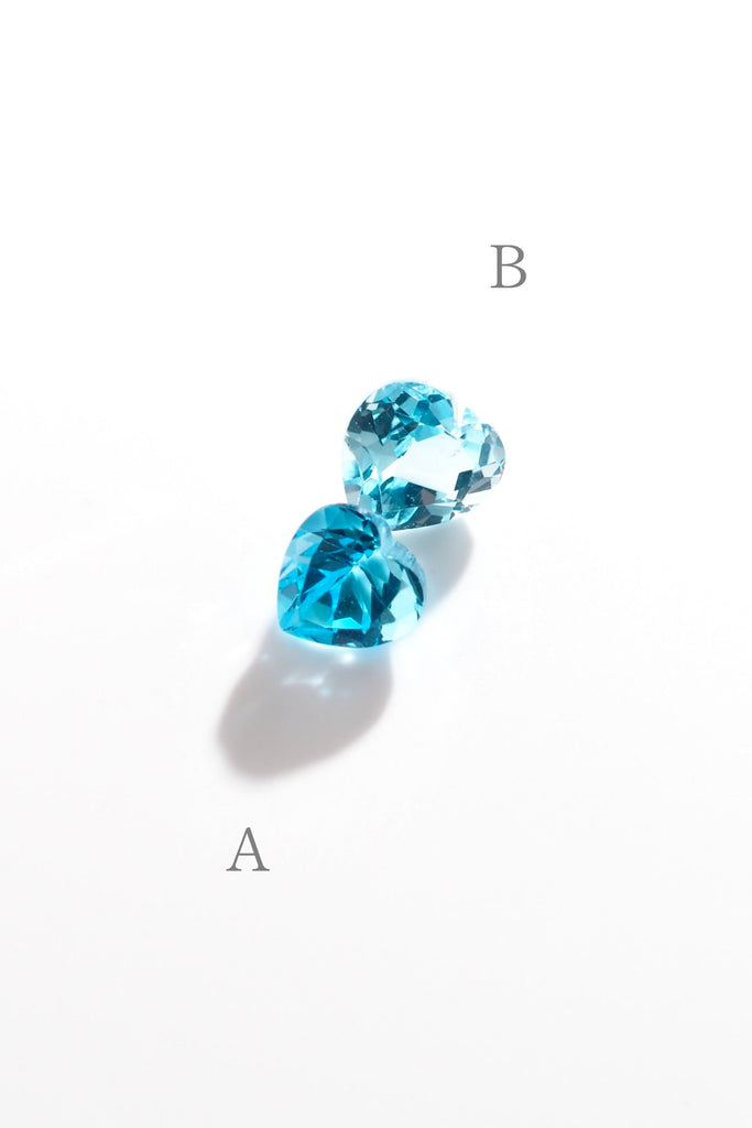 色調の深いスイスブルー寄りな個体A。より大ぶりで透明感のあるスカイブルー寄りな個体B。お好みで、ペアでお迎えください。