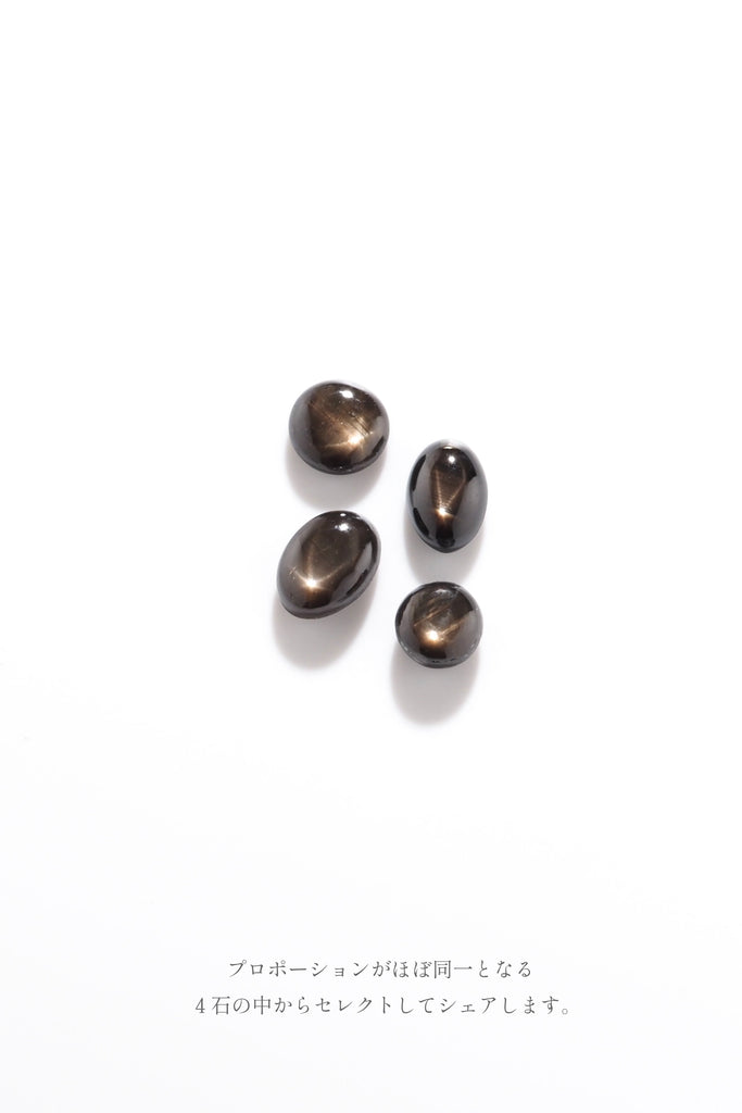 ブラックを基調とするため、スター効果の光の筋がよりくっきりと楽しめます。洗練されたスタイリッシュな表情もたまりません。ユニセックスなジュエリーへ仕立てる上でも、極上の個体たちでした。