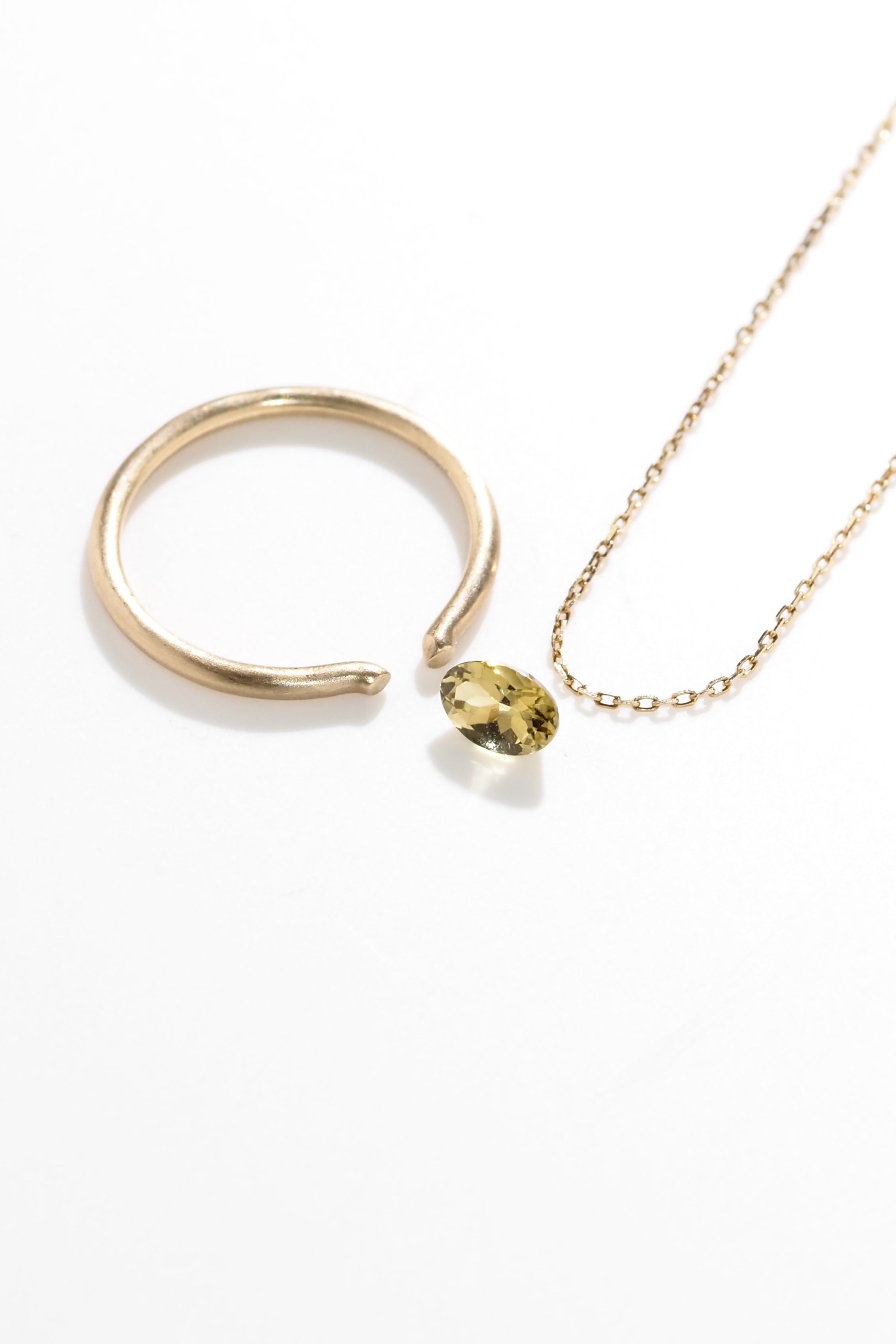 ・シンプルなソリティアリングに仕立てれば、石そのものの透明感と黄金色の煌めきが際立ちます。